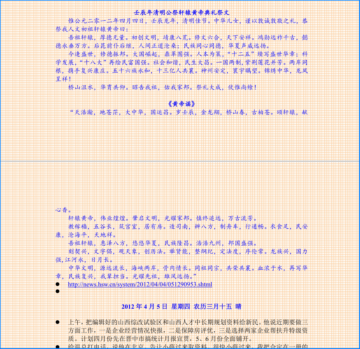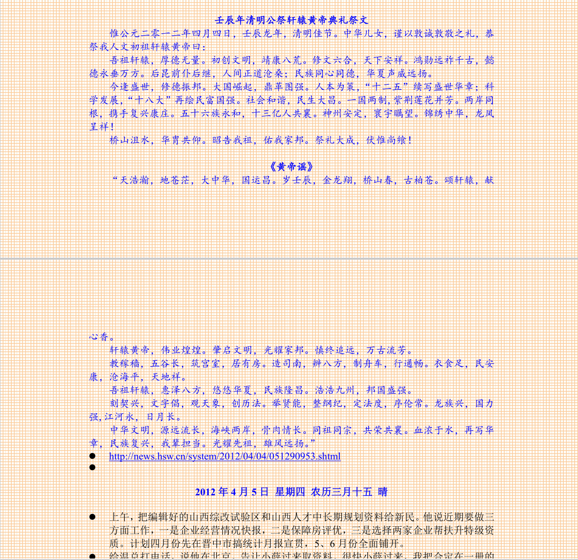 “天浩瀚,地蒼茫,大中華,國(guó)運(yùn)昌。歲壬辰,金龍翔,橋山春,古柏蒼。頌軒轅,獻(xiàn)心香。