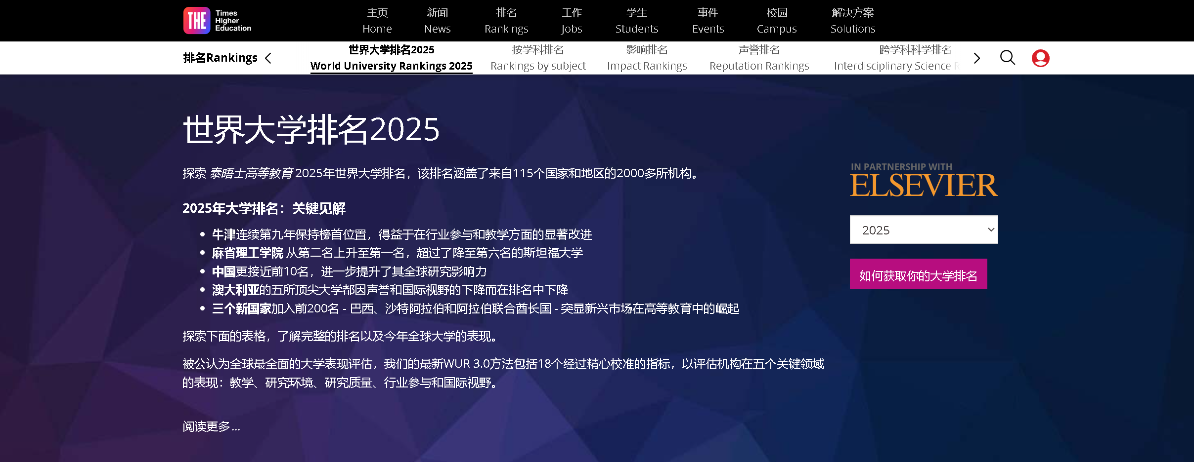 探索 泰晤士高等教育 2025年世界大學排名,該排名涵蓋了來自115個國家和地區(qū)的2855所機構(gòu)。