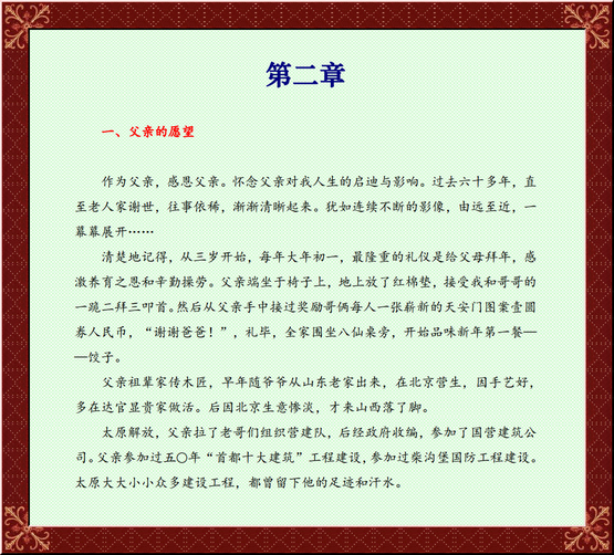 我最大的感慨和滿足,是對父母的孝道做到了無憾無悔,在他們生前和身后都恪盡做兒子的本分,替他們分憂解難竭盡全力,并且作為為人處世第一準(zhǔn)則!因此,一輩子情感的付出獲得了百倍的回報(bào),真正得到了一般人不可能理解的空間和境界!那就是智慧、格局、成就未來的大道理!