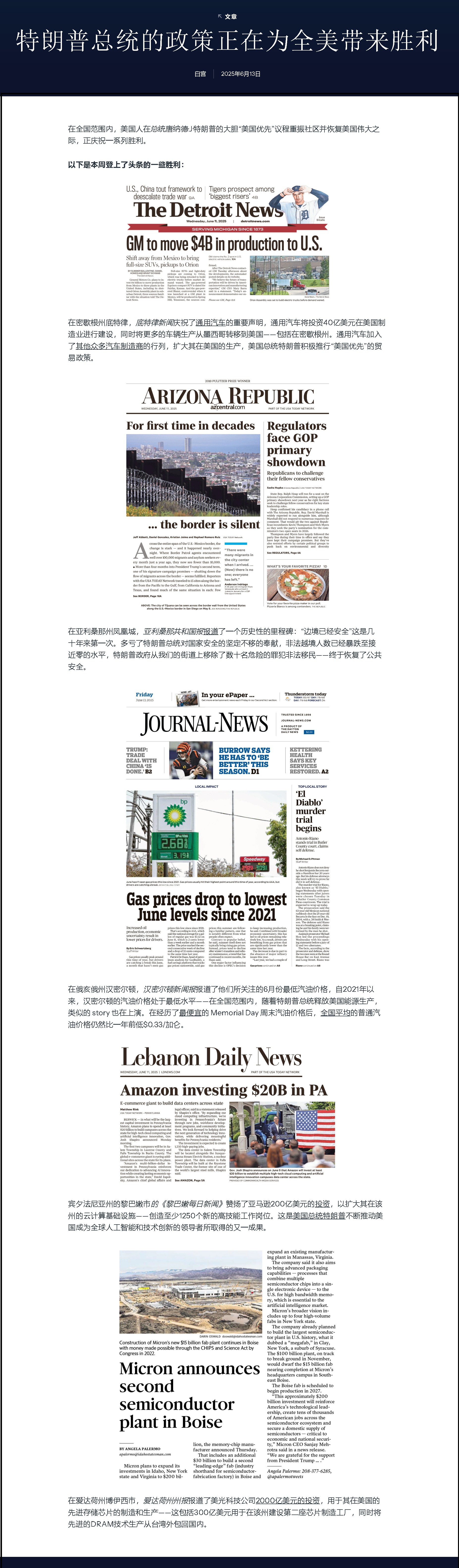 感悟特朗普總統(tǒng)的政策正在為全美帶來勝利——美國媒體今天的欺騙正在為明天的謊言背書!