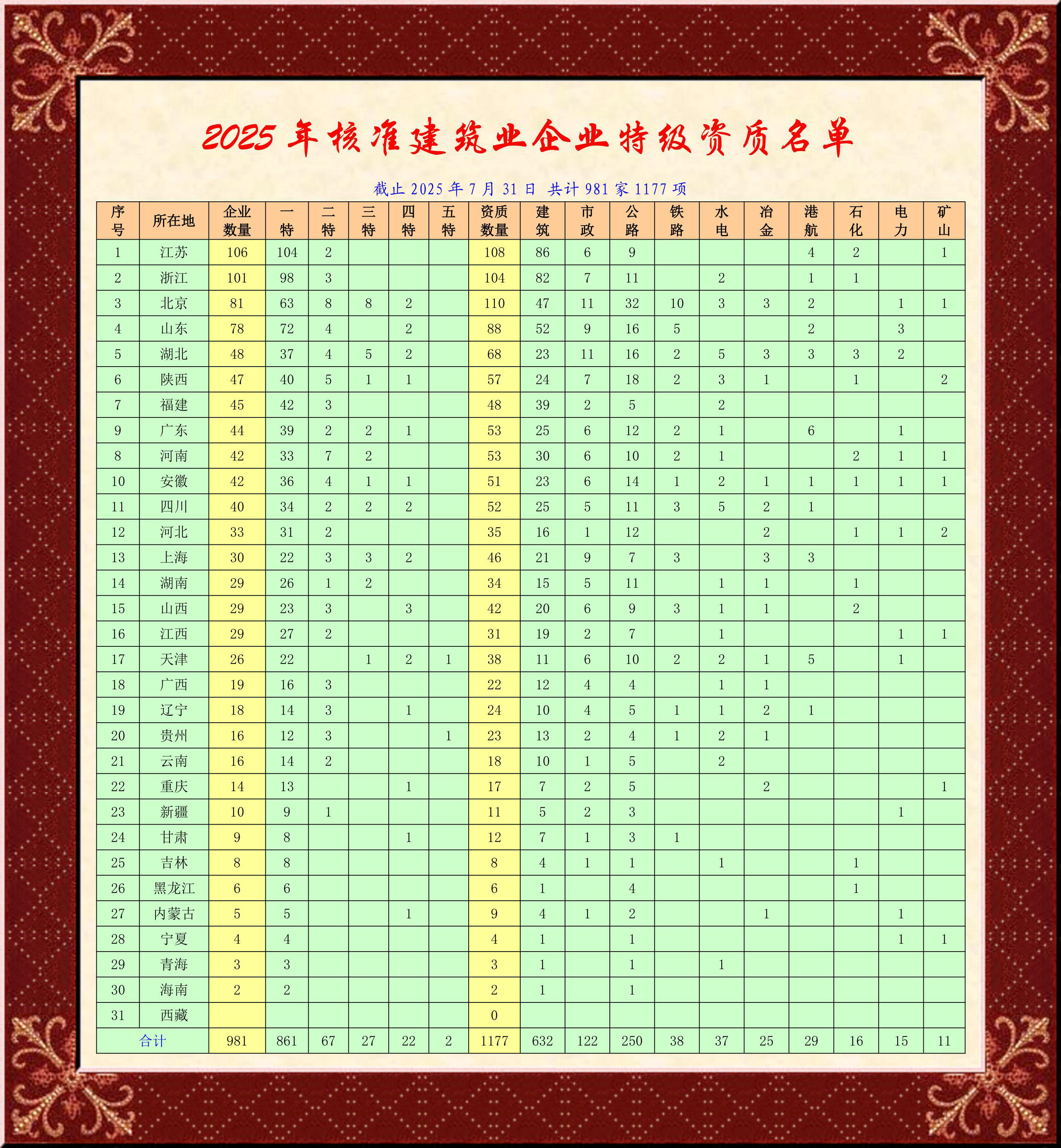 自2012年實施建筑業(yè)企業(yè)資質(zhì)等級就位以來,特級企業(yè)第一方陣從十三年前的200多家,今年突破1000家已成定局,這是多么大的空間和變化?!