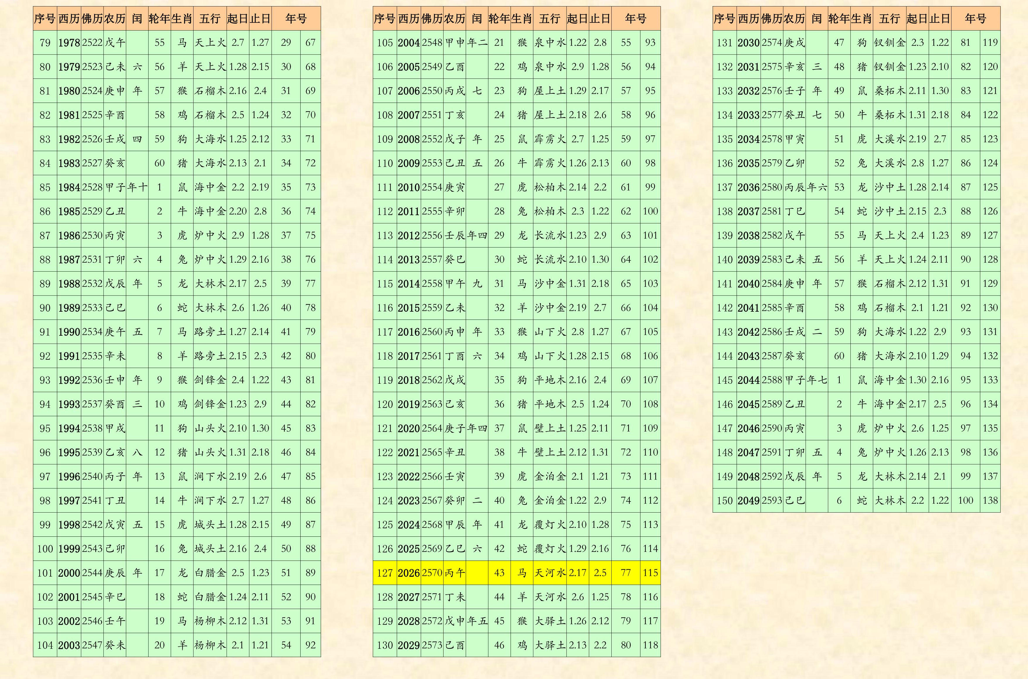 2026年農(nóng)歷丙午年生肖年齡對(duì)照表