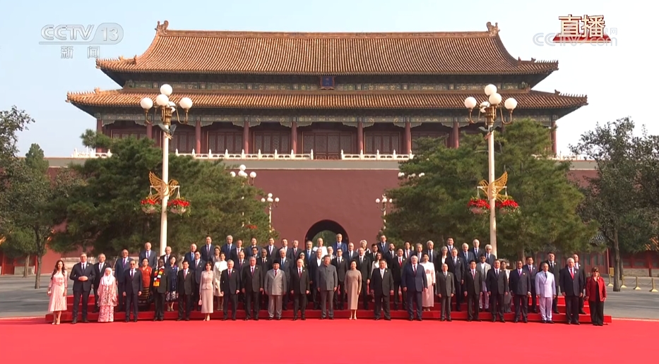 26架直-19武裝直升機(jī)組成“80”字樣,寓意紀(jì)念中國(guó)人民抗日戰(zhàn)爭(zhēng)暨世界反法西斯戰(zhàn)爭(zhēng)勝利80周年