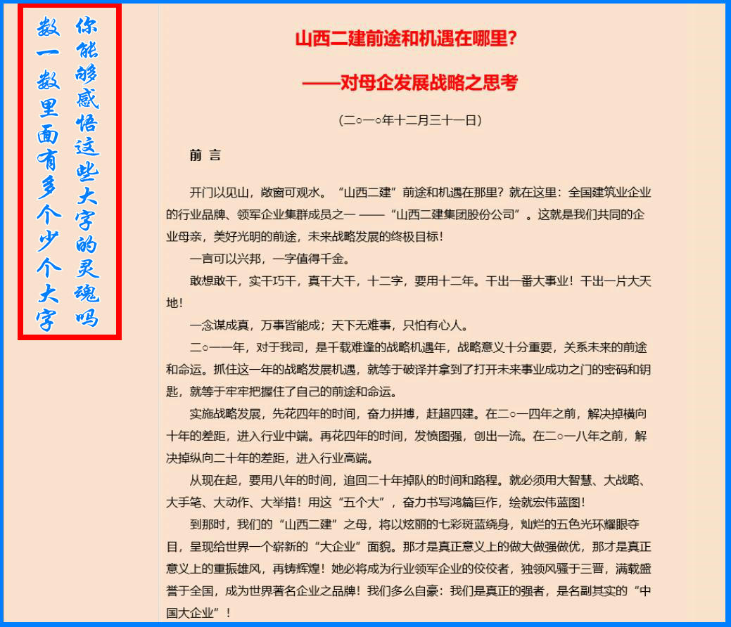 來到人世間,一人為大,二人為天,這是與生俱來的靈感和感悟。所以我的文章離不了這個(gè)“大”字,大格局,大境界,大覺悟,大手筆,大魄力!
