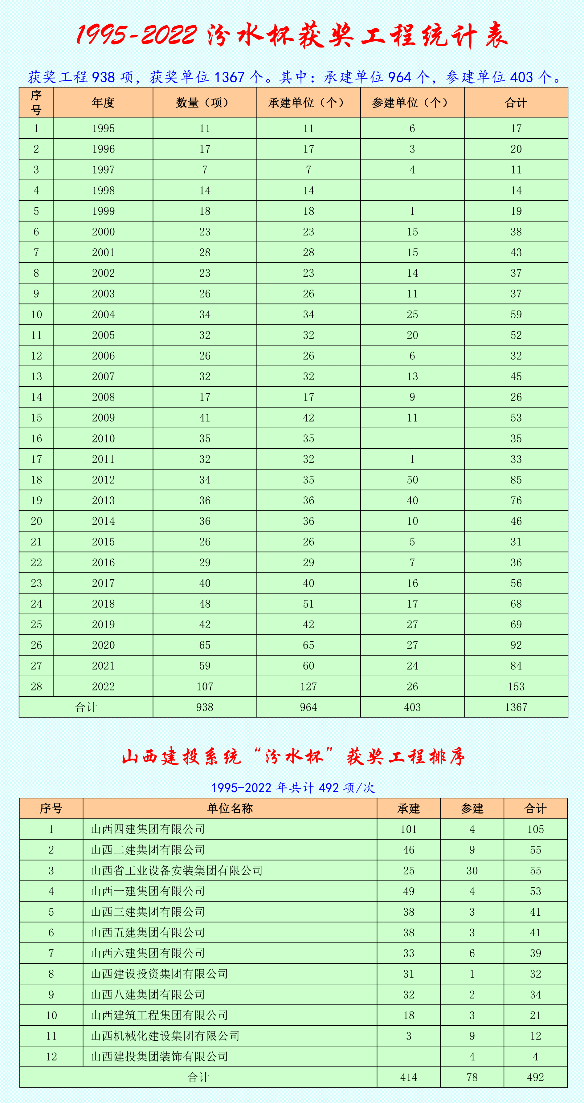 【行業(yè)資料】1995-2021 山西省汾水杯工程總榜單