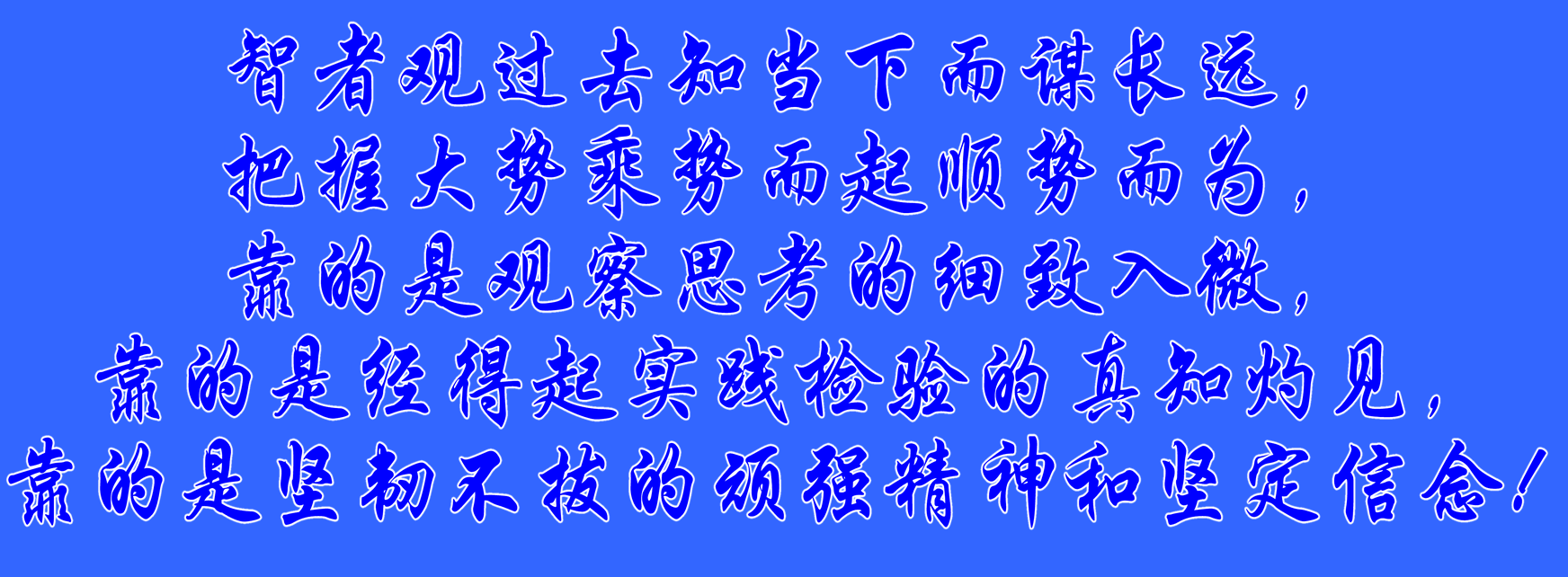 智者觀過去知當(dāng)下而謀長遠(yuǎn),把握大勢乘勢而起順勢而為,靠的是觀察思考的細(xì)致入微,靠的是經(jīng)得起實(shí)踐檢驗(yàn)的真知灼見,靠的是堅(jiān)韌不拔的頑強(qiáng)精神和堅(jiān)定信念!