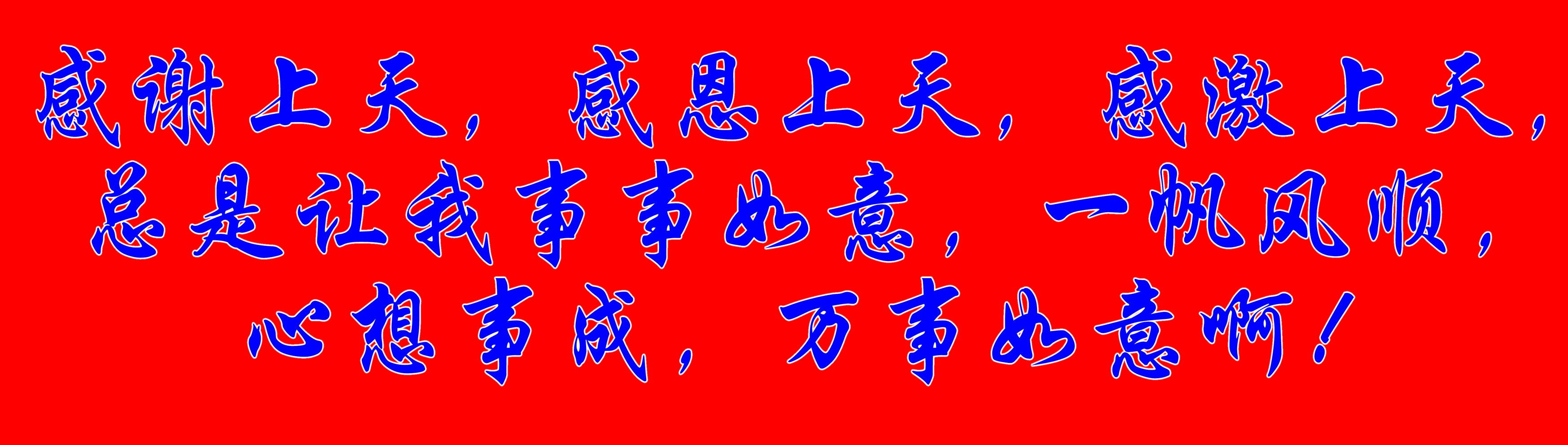 感謝上天,感恩上天,感激上天,總是讓我事事如意,一帆風(fēng)順,心想事成,萬事如意??!