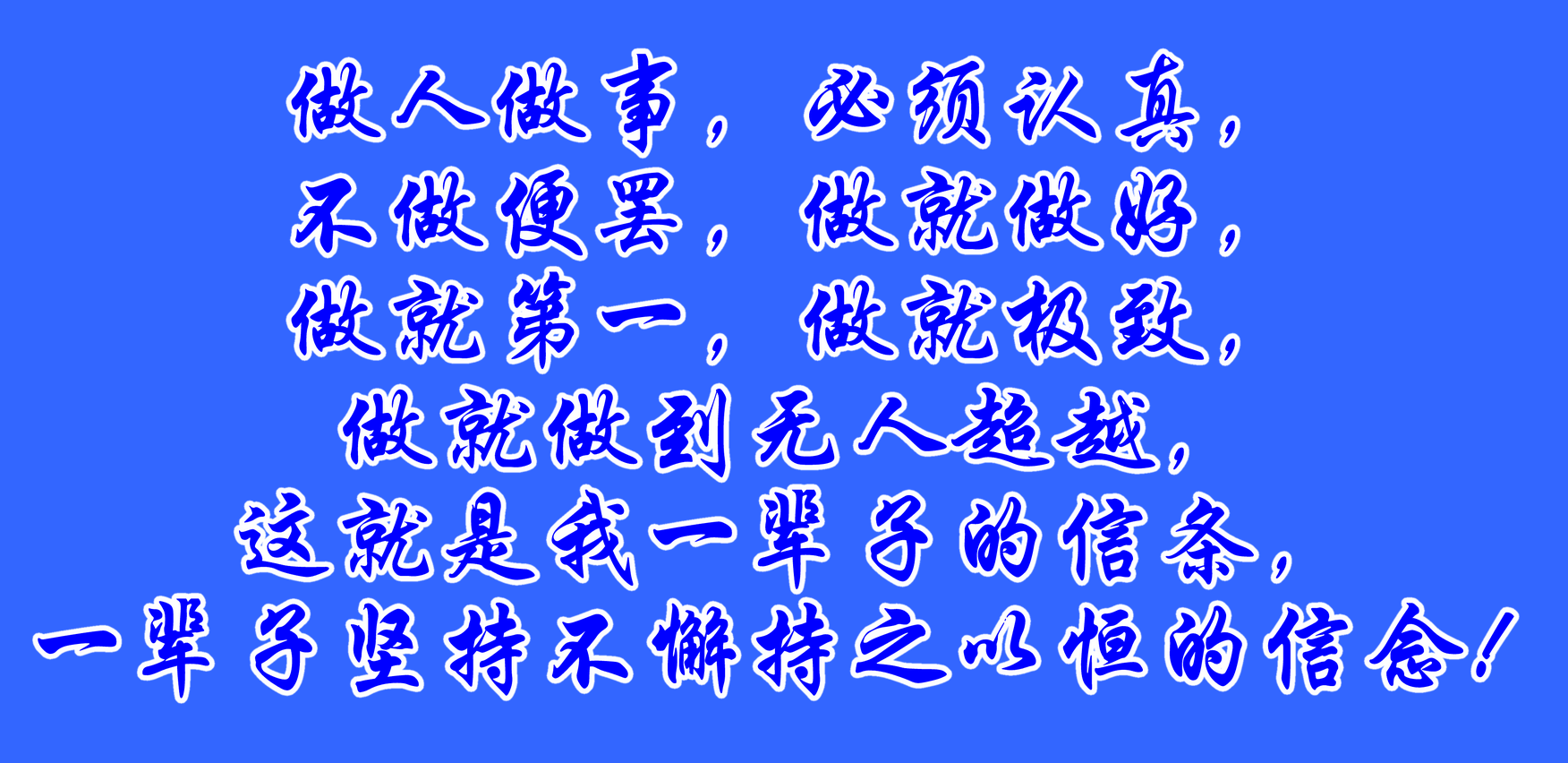 做人做事,必須認(rèn)真,不做便罷,做就做好,做就第一,做就極致,做就做到無人超越,這就是我一輩子的信條,一輩子堅(jiān)持不懈持之以恒的信念!可以說,七十年始終如一,不曾懈怠,年復(fù)一年,日復(fù)一日,修成正果,此生甚慰!我做到了人生無憾上天護(hù)佑的境界,做到了為人一世天地良心的高端,做到了道德和合一體的自然,感慨、欣慰、滿足!