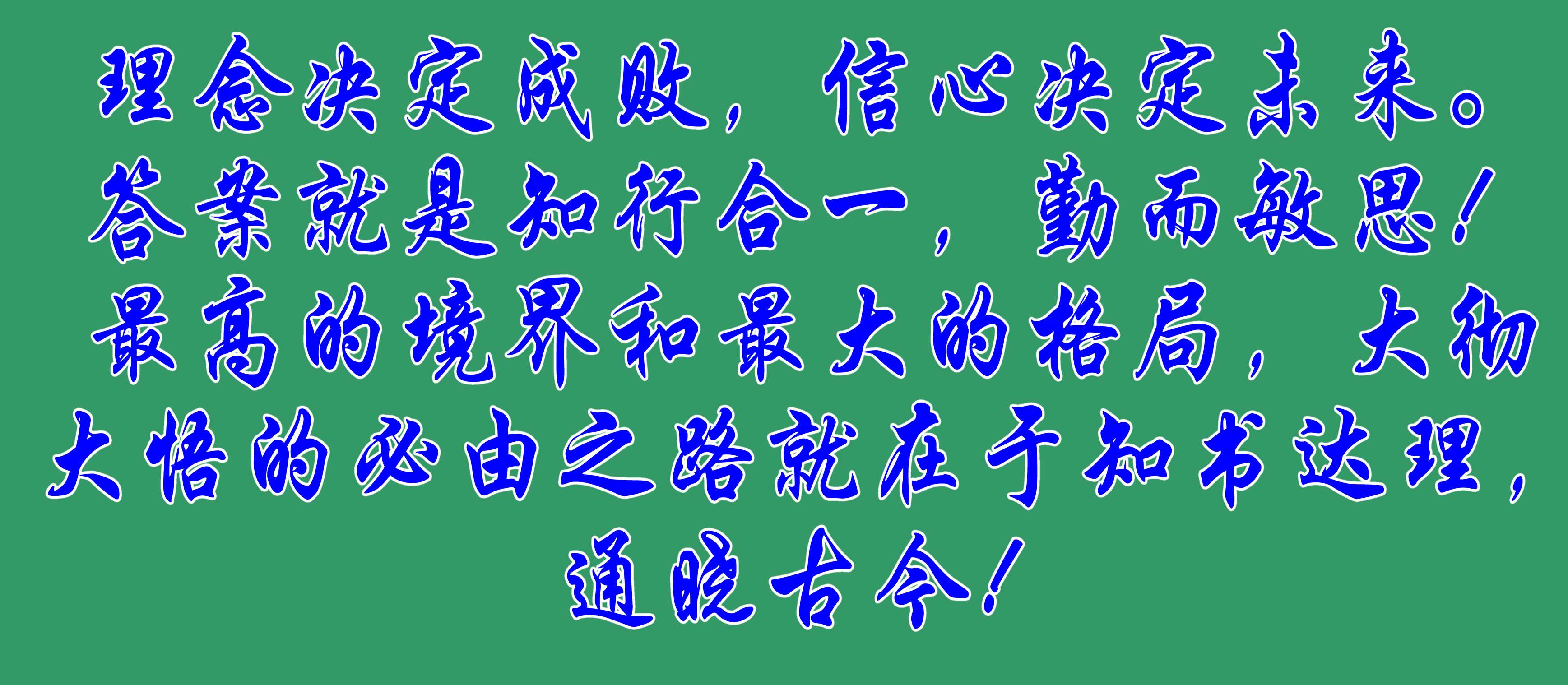 理念決定成敗,信心決定未來(lái)。答案就是知行合一,勤而敏思!最高的境界和最大的格局,大徹大悟的必由之路就在于知書(shū)達(dá)理,通曉古今!