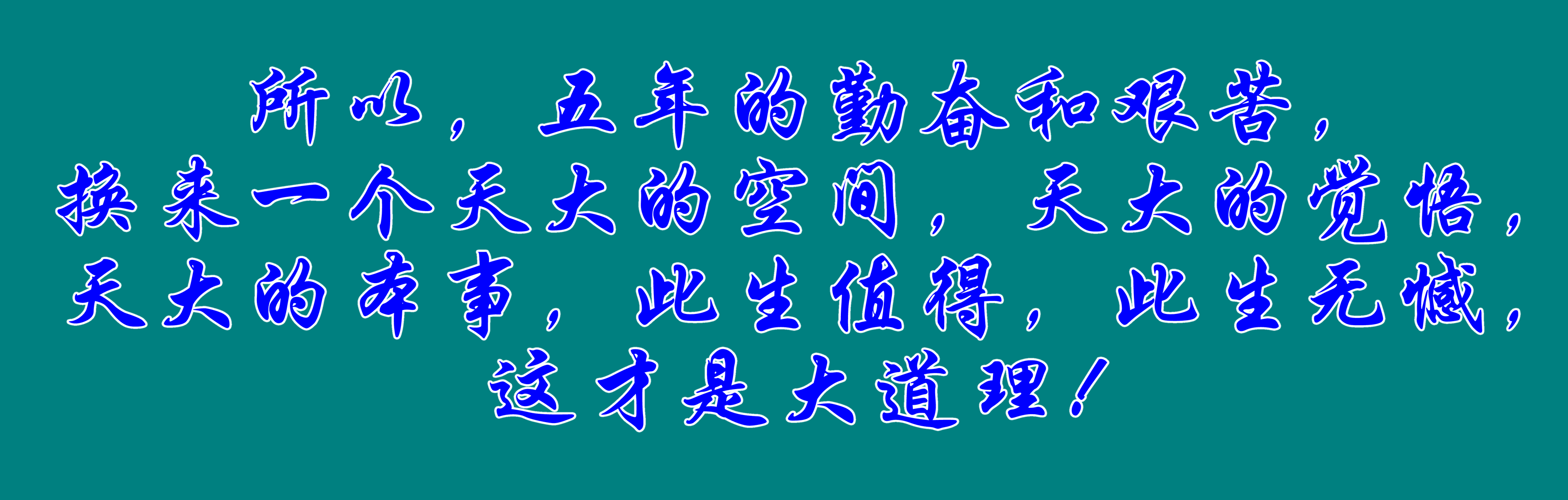 所以,五年的勤奮和艱苦,換來一個天大的空間,天大的覺悟,天大的本事,此生值得,此生無憾,這才是大道理!