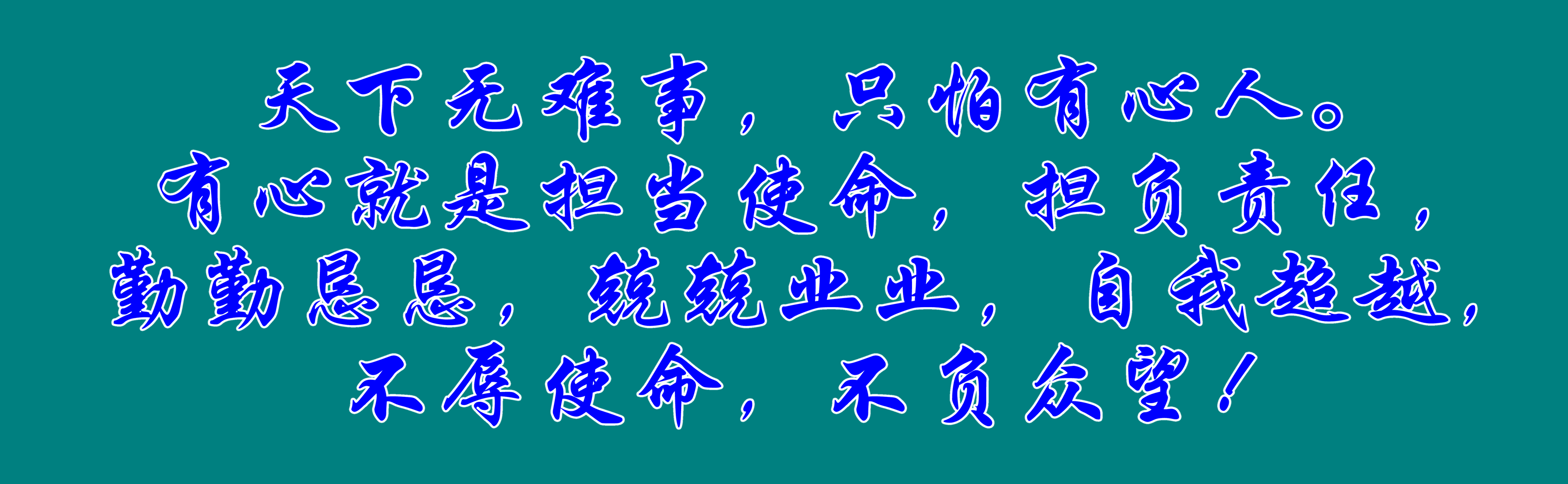 天下無難事,只怕有心人。有心就是擔(dān)當(dāng)使命,擔(dān)負(fù)責(zé)任,勤勤懇懇,兢兢業(yè)業(yè),自我超越,不辱使命,不負(fù)眾望!
