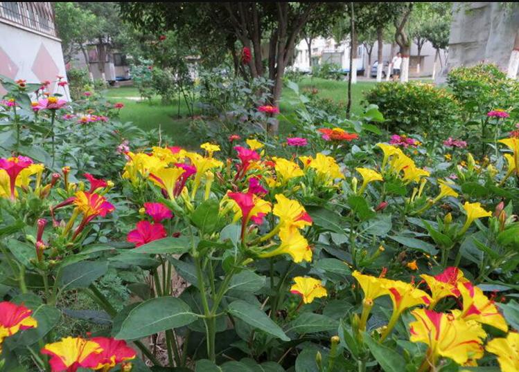 它的學(xué)名叫紫茉莉,過去太原地區(qū)老人們叫它送閨女花,后來人們也叫它地雷花,可能是緣于它的種子黑黝黝像個(gè)小地雷吧!