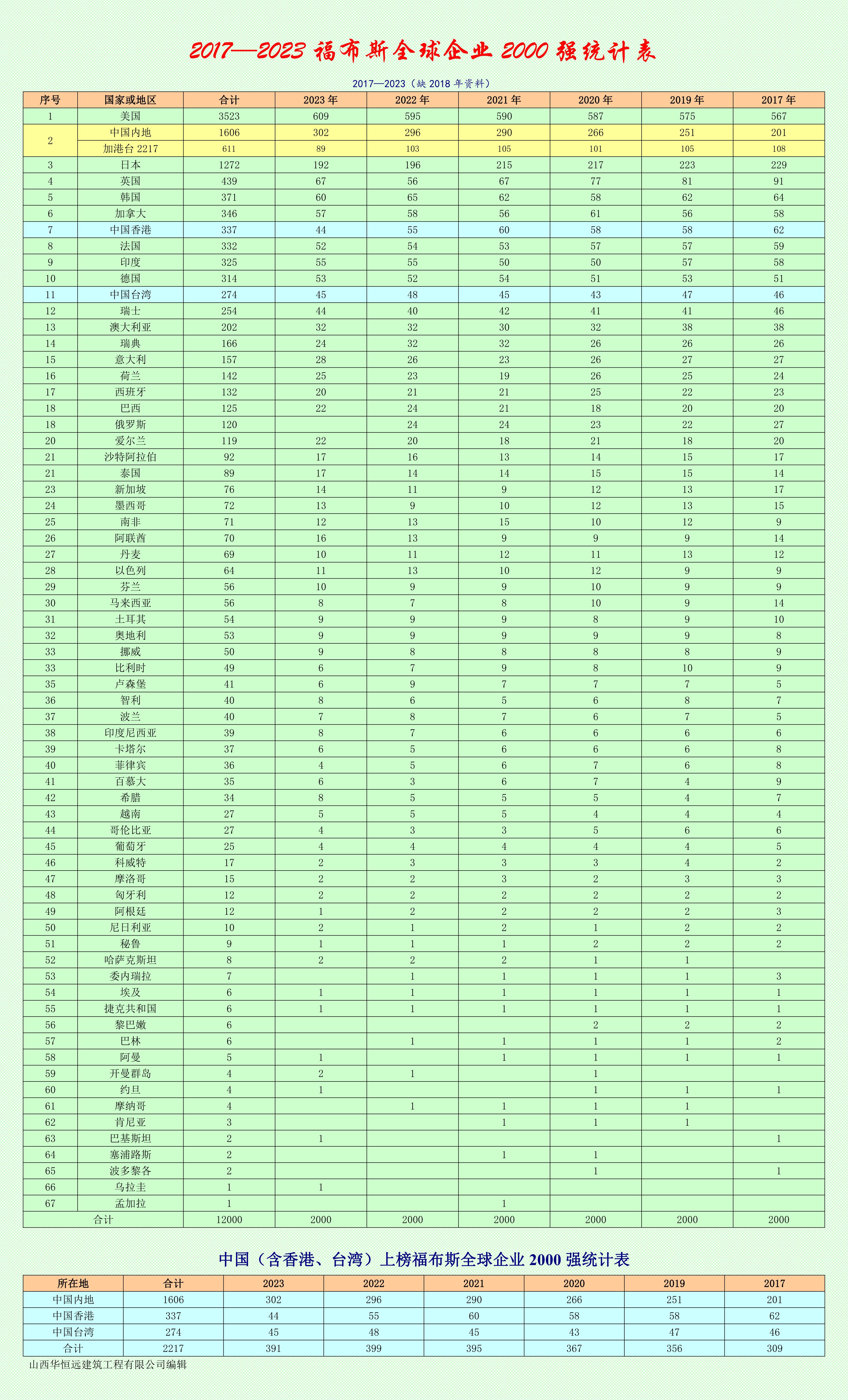 從2003年開始,每年發(fā)布全球企業(yè)2000強榜單,中國企業(yè)以后來者居上的磅礴之勢進軍福布斯,短短二十年,已經(jīng)成為世界亞軍,這是何等的速度,何等的成就,何等的偉大??!