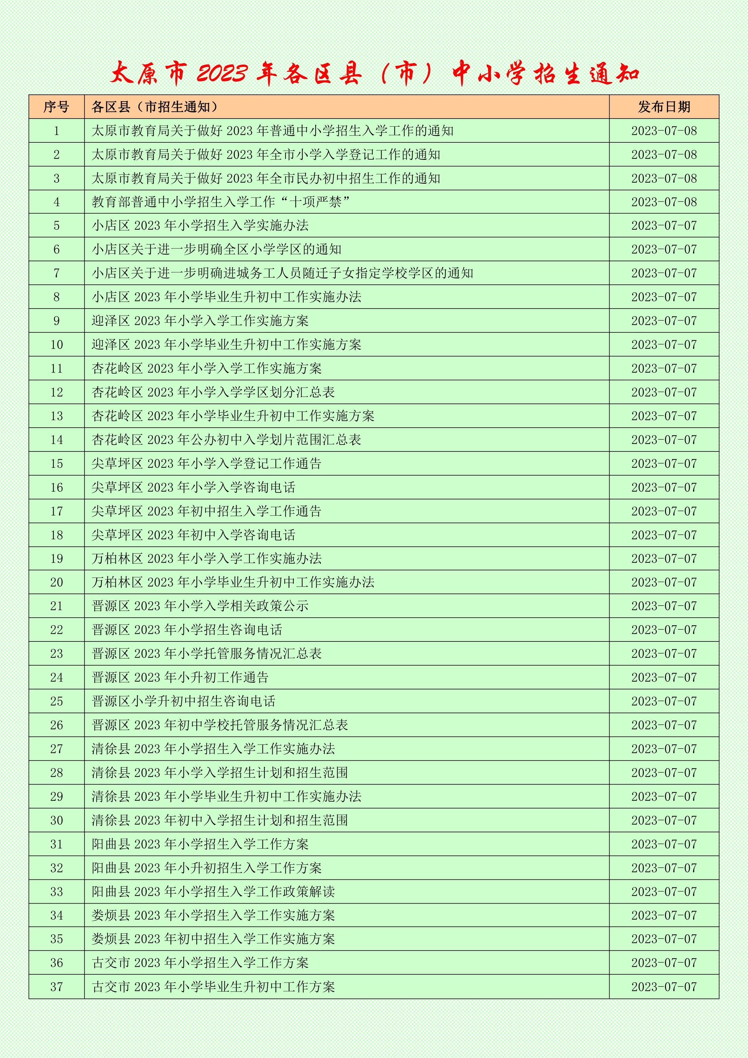 今天一大早,太原市教育局2023年普通中小學(xué)校招生入學(xué)通知和各區(qū)(市)縣入學(xué)方案及劃片范圍全部公布了。