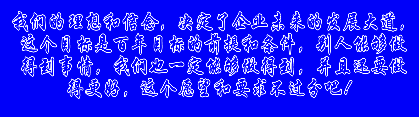 我們的理想和信念,決定了企業(yè)未來的發(fā)展大道,這個目標是百年目標的前提和條件,別人能夠做得到事情,我們也一定能夠做得到,并且還要做得更好,這個愿望和要求不過分吧!
