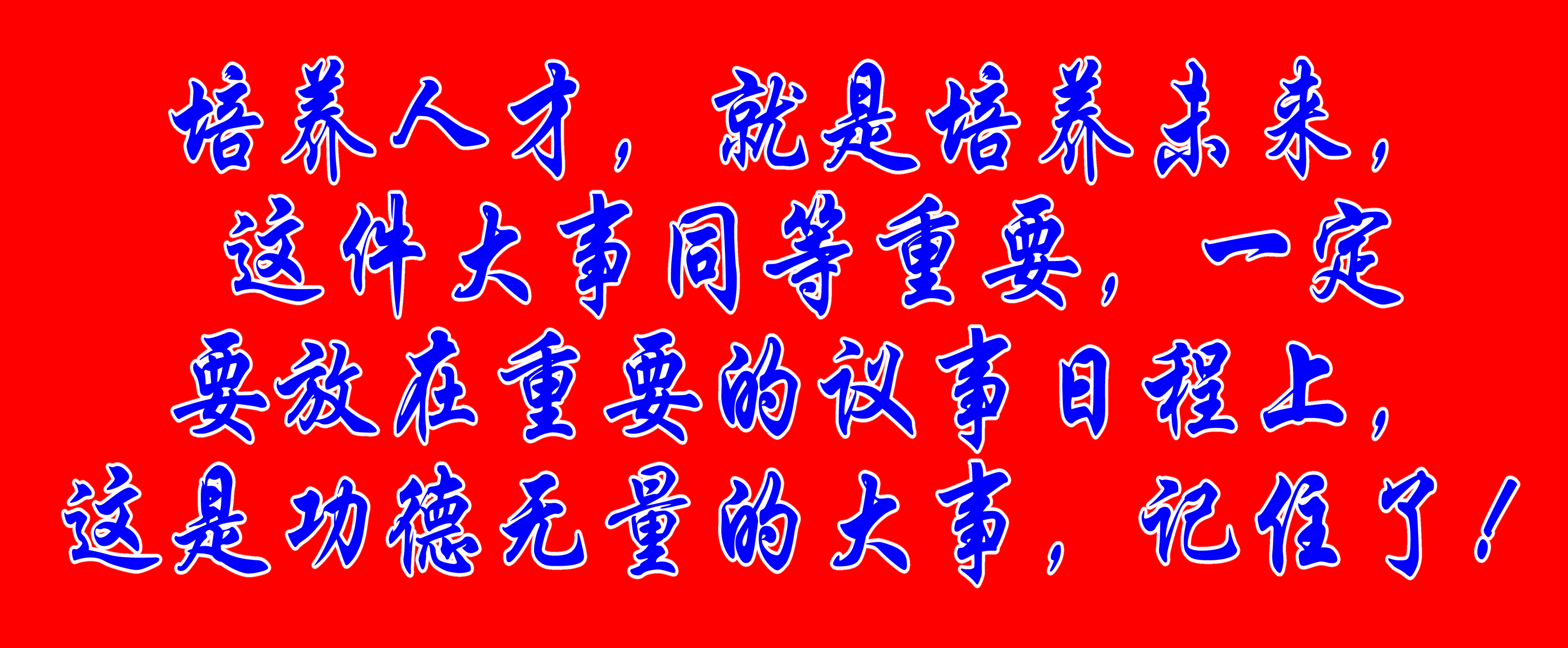 另外,培養(yǎng)人才,就是培養(yǎng)未來,這件大事同等重要,一定要放在重要的議事日程上,這是功德無量的大事,記住了!