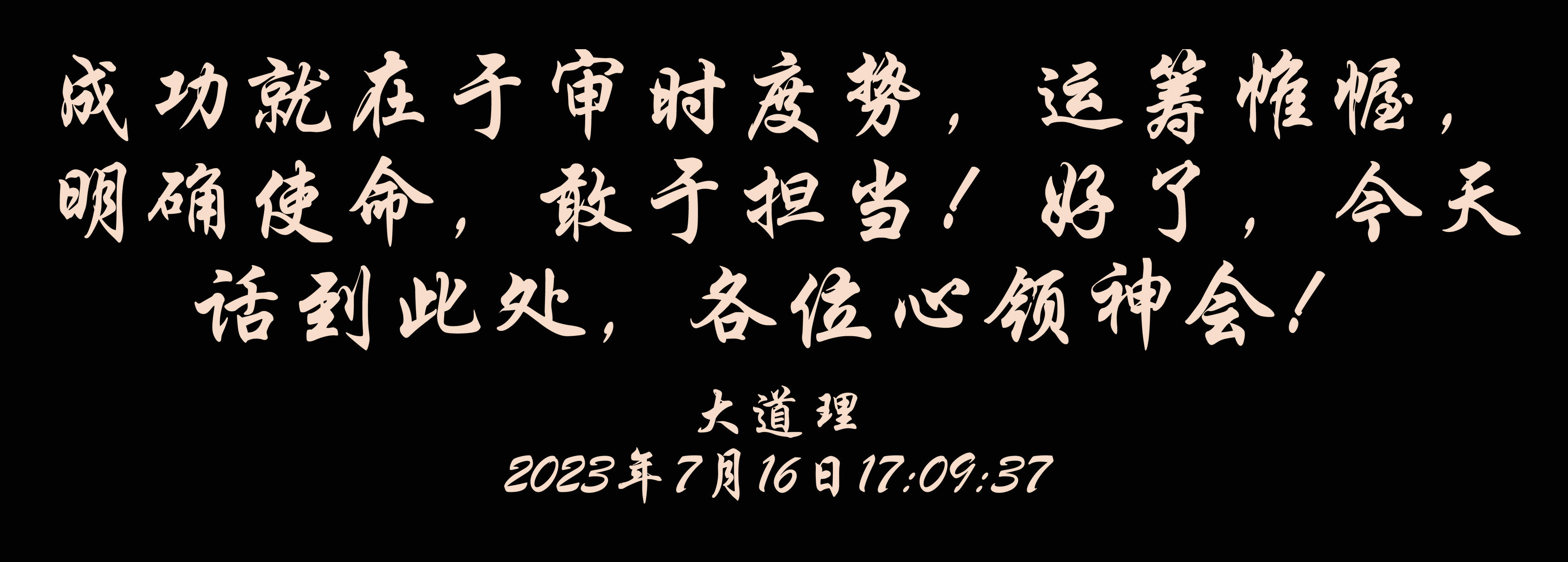 成功就在于審時度勢,運籌帷幄,明確使命,敢于擔當!好了,今天話到此處,各位心領神會!
