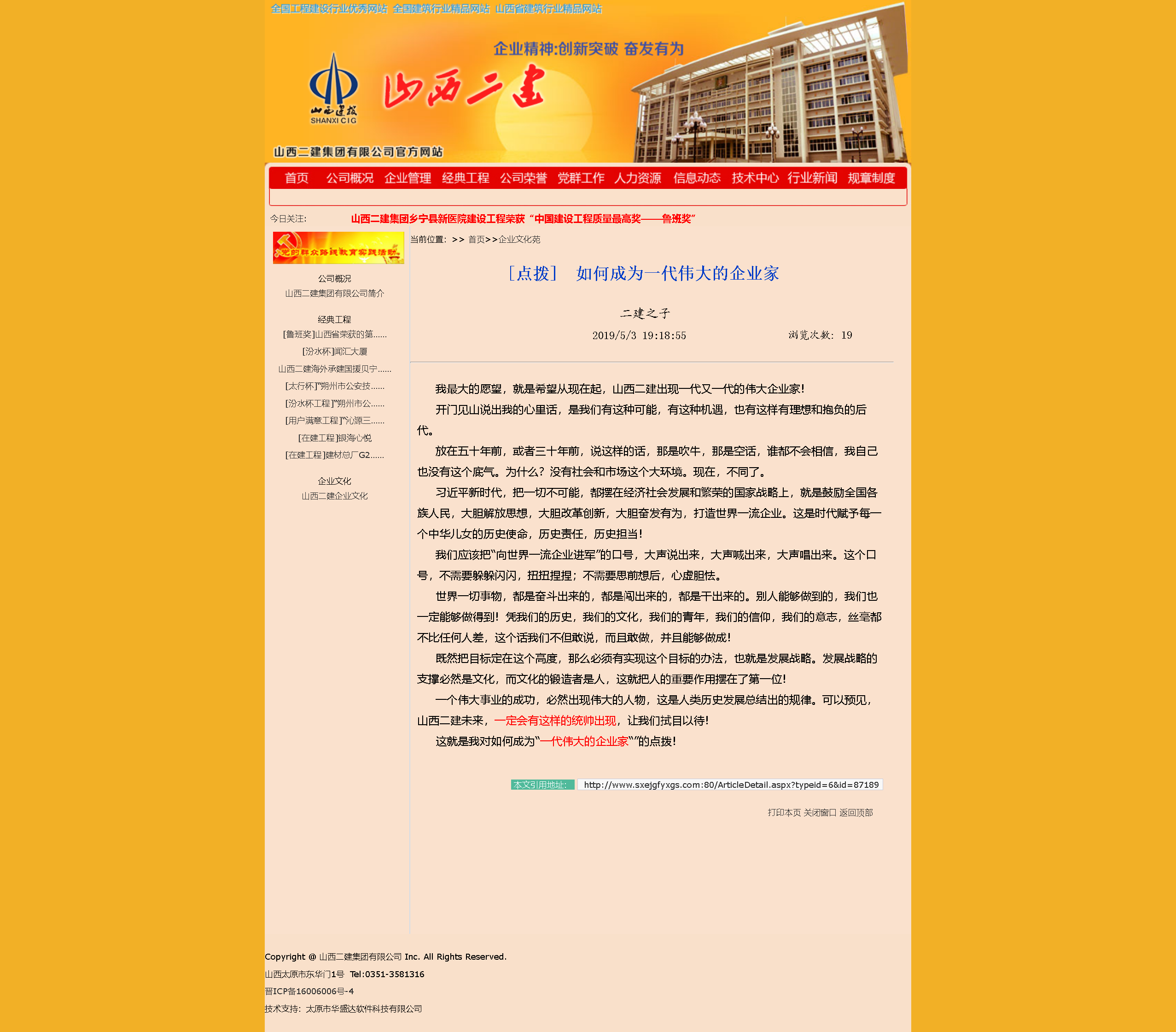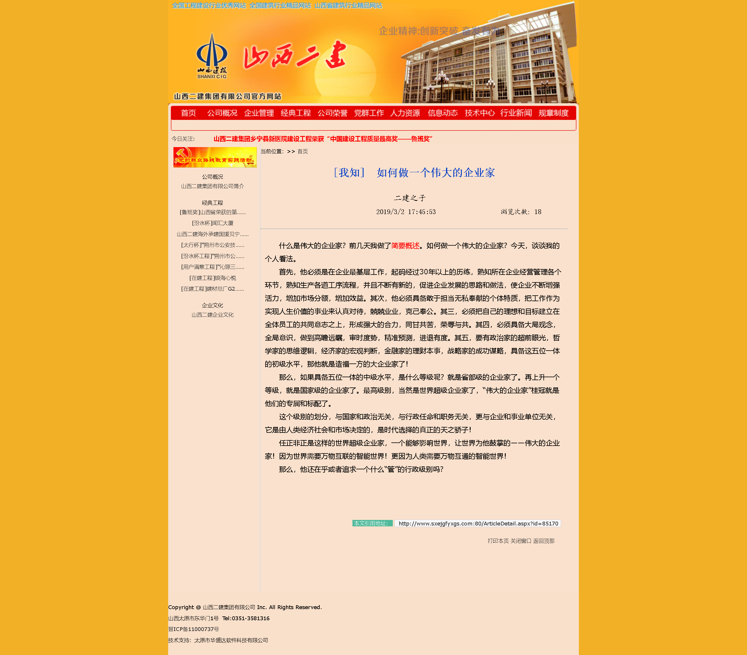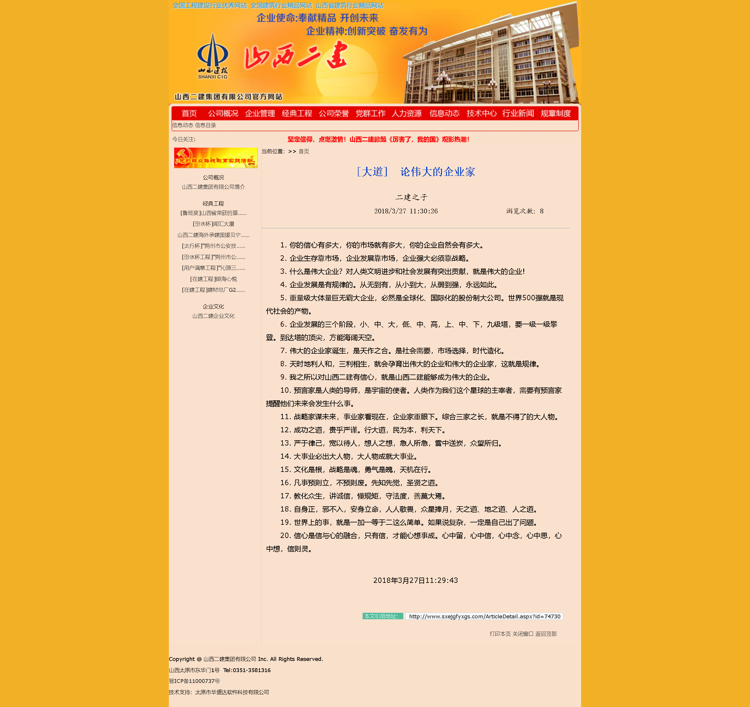 一個(gè)偉大事業(yè)的成功,必然出現(xiàn)偉大的人物,這是人類歷史的規(guī)律??梢灶A(yù)見,山西二建未來,一定會(huì)有這樣的統(tǒng)帥出現(xiàn),讓我們拭目以待!