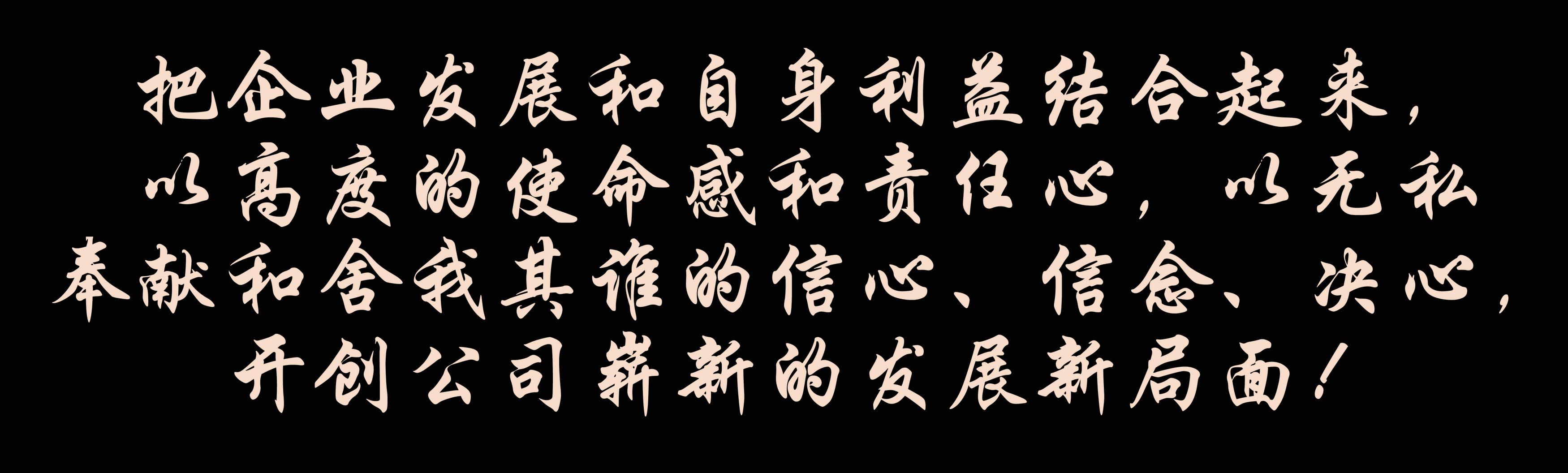 這些忠告和勸戒,希望你們?nèi)胄娜肽X,不要只看眼前利益,要看長遠(yuǎn)利益,識大體,顧大局,把全體員工的利益放在第一位,去謀劃,去實(shí)踐,去落實(shí)!希望你們不負(fù)眾望,不負(fù)重托,不辱使命,在董事長和副董事長的領(lǐng)導(dǎo)和支持下,同心同德,不離不棄,團(tuán)結(jié)起來,爭取更大的勝利!