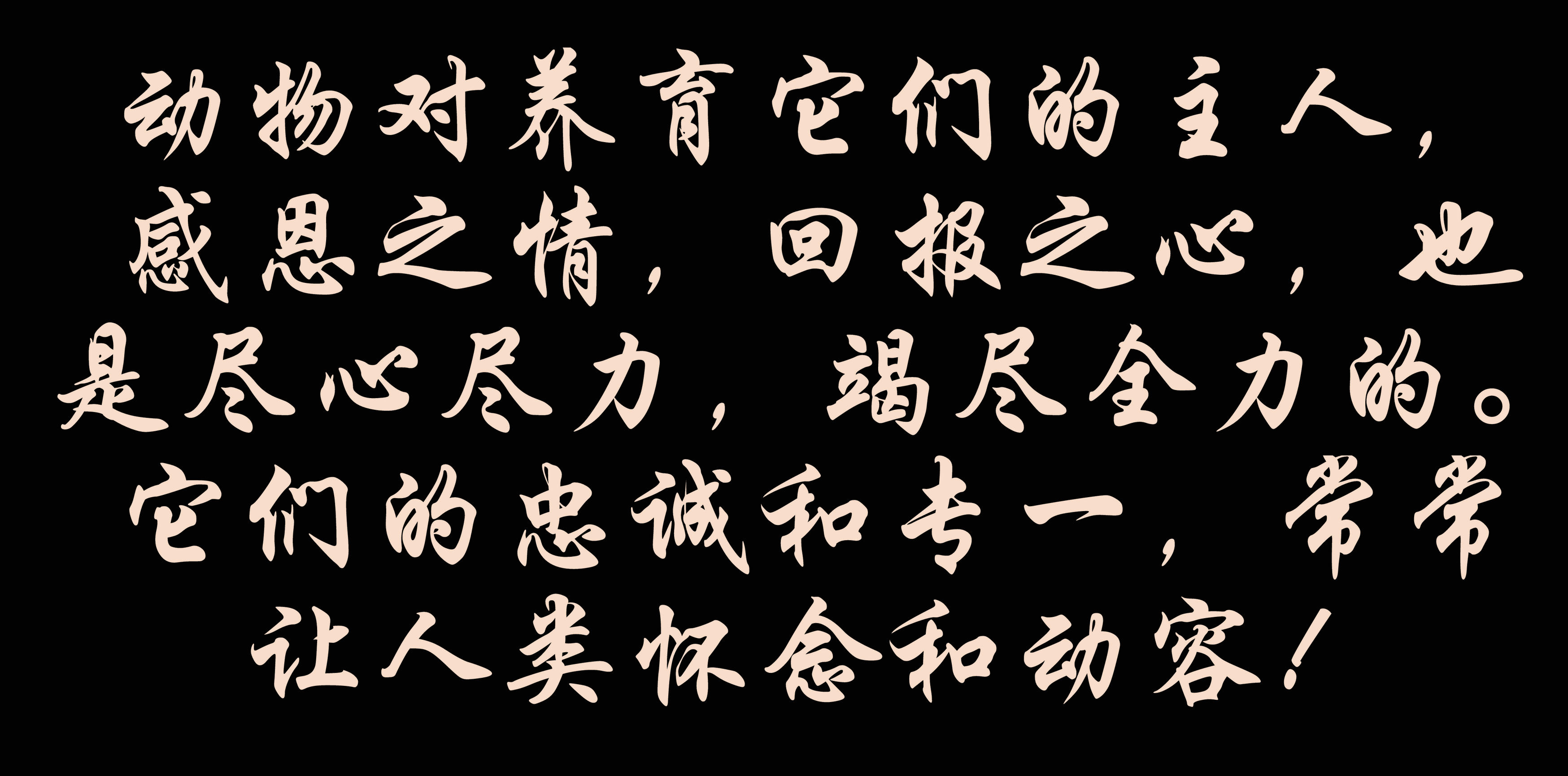 動(dòng)物對(duì)養(yǎng)育它們的主人,感恩之情,回報(bào)之心,也是盡心盡力,竭盡全力的。它們的忠誠(chéng)和專(zhuān)一,常常讓人類(lèi)懷念和動(dòng)容!