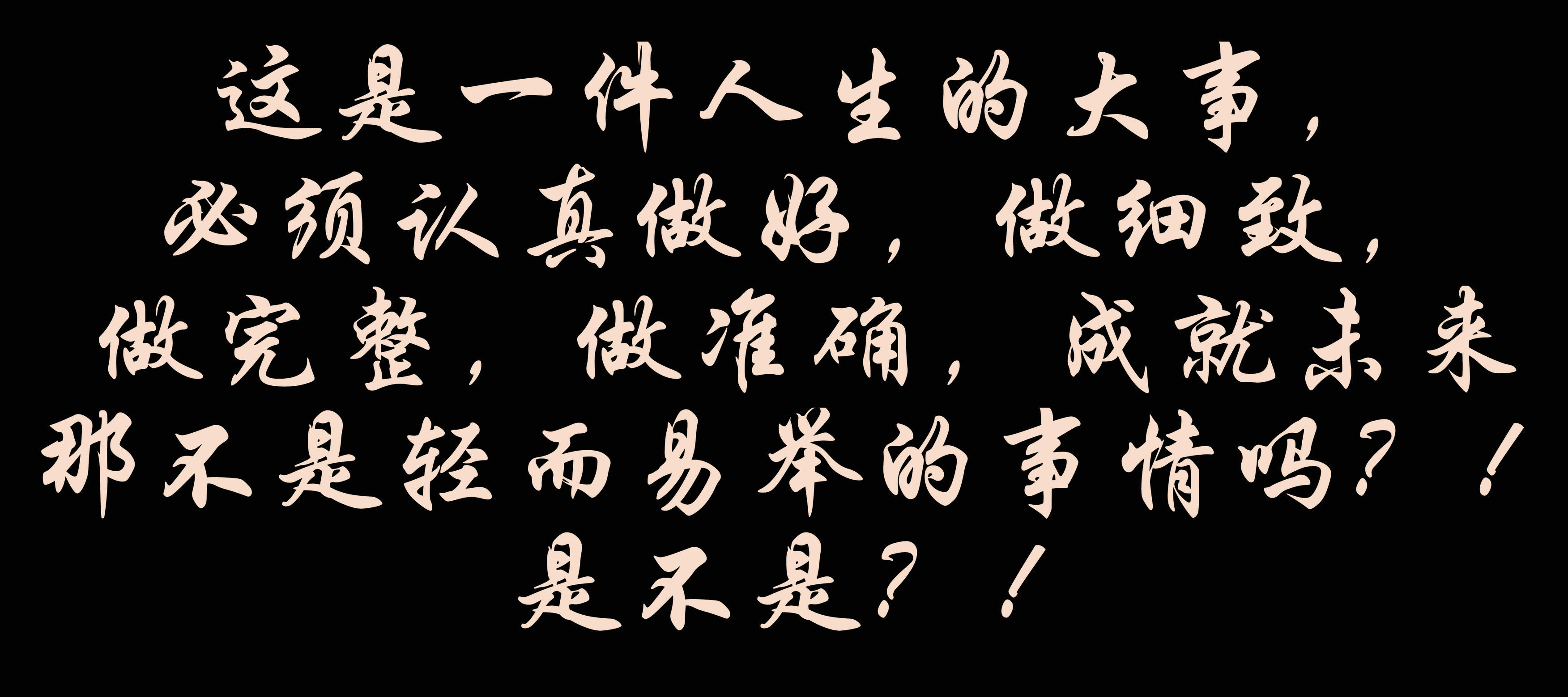 這是一件人生的大事,必須認(rèn)真做好,做細(xì)致,做完整,做準(zhǔn)確,成就未來(lái)那不是輕而易舉的事情嗎?!