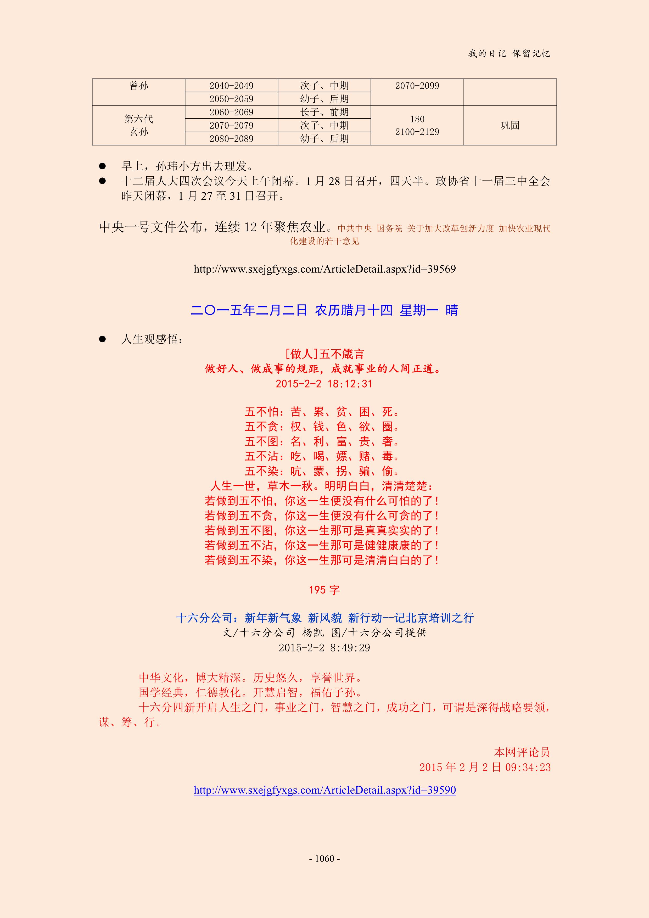 下面四頁(yè)《我的日記·保留記憶》,記錄了2015年1月31日至2月4日五天活動(dòng)的內(nèi)容。如果沒(méi)有日記,那就是記憶的空白了!