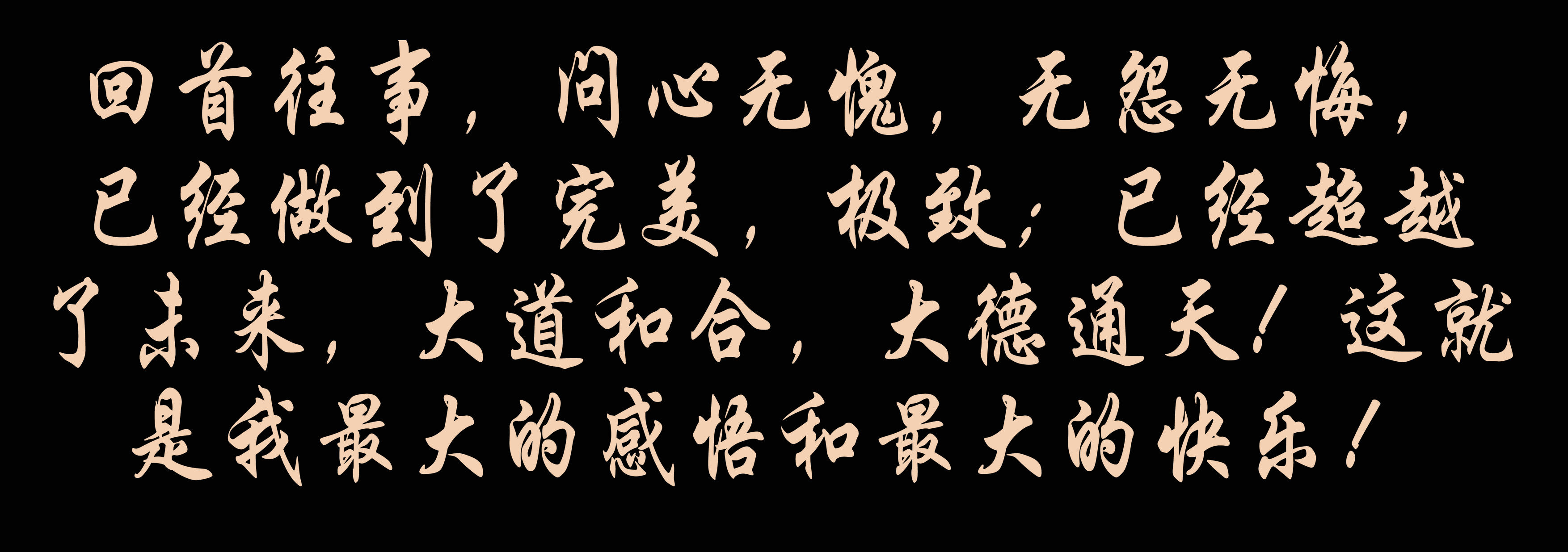 回首往事,問心無愧,無怨無悔,已經(jīng)做到了完美,極致;已經(jīng)超越了未來,大道和合,大德通天!這就是我最大的感悟和最大的快樂——成就我成就的企業(yè)和未來!