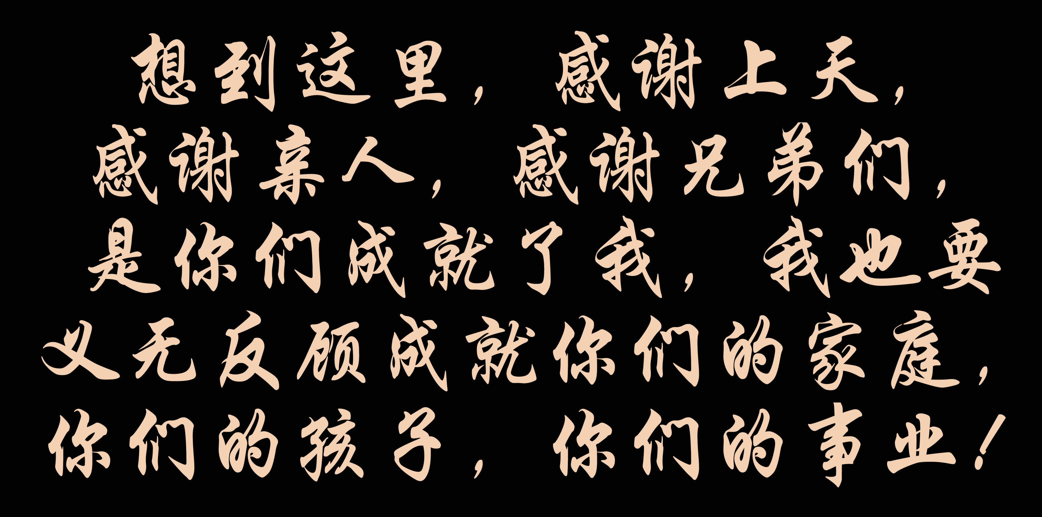 想到這里,感謝上天,感謝親人,感謝兄弟們,是你們成就了我,我也要義無反顧成就你們的家庭,你們的孩子,你們的事業(yè)!