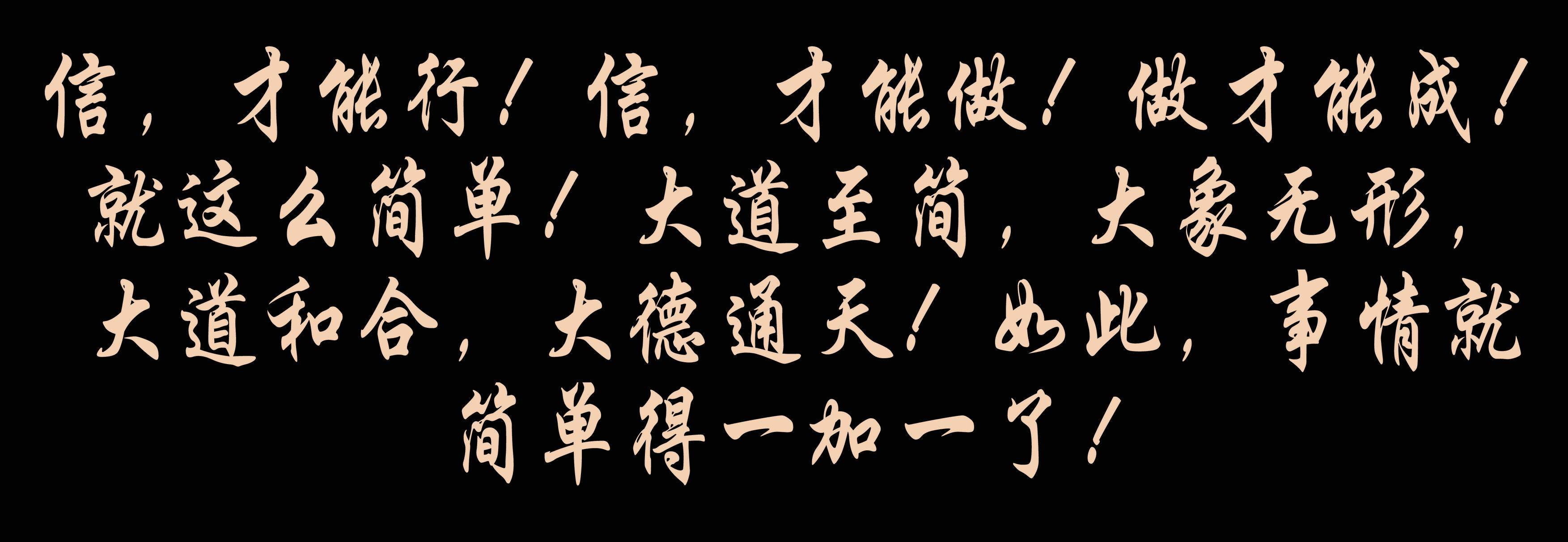 信,才能行!信,才能做!做才能成!就這么簡(jiǎn)單!大道至簡(jiǎn),大象無形,大道和合,大德通天!