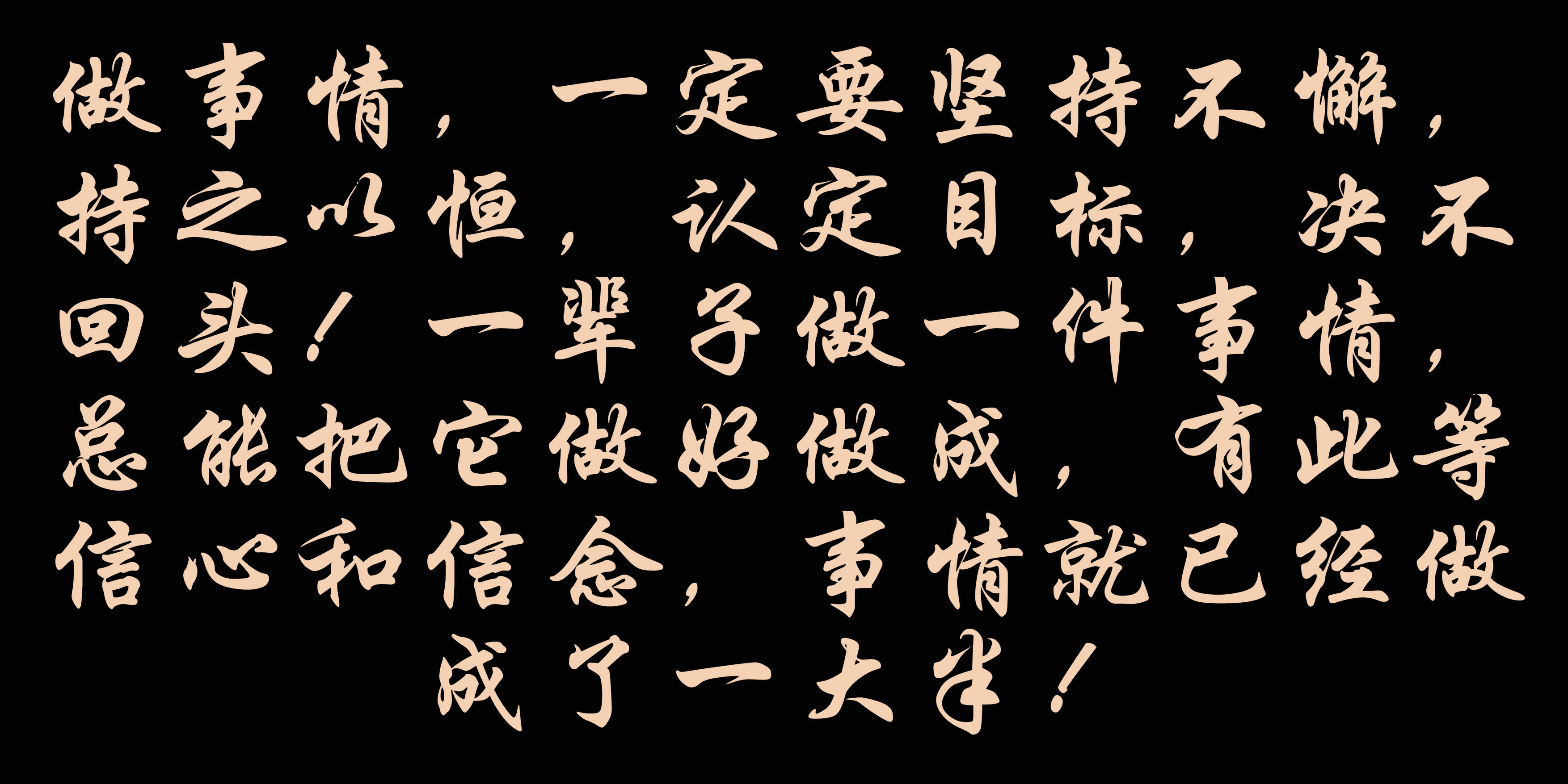 做事情,一定要堅(jiān)持不懈,持之以恒,認(rèn)定目標(biāo),決不回頭!一輩子做一件事情,總能把它做好做成,有此等信心和信念,事情就已經(jīng)做成了一大半!