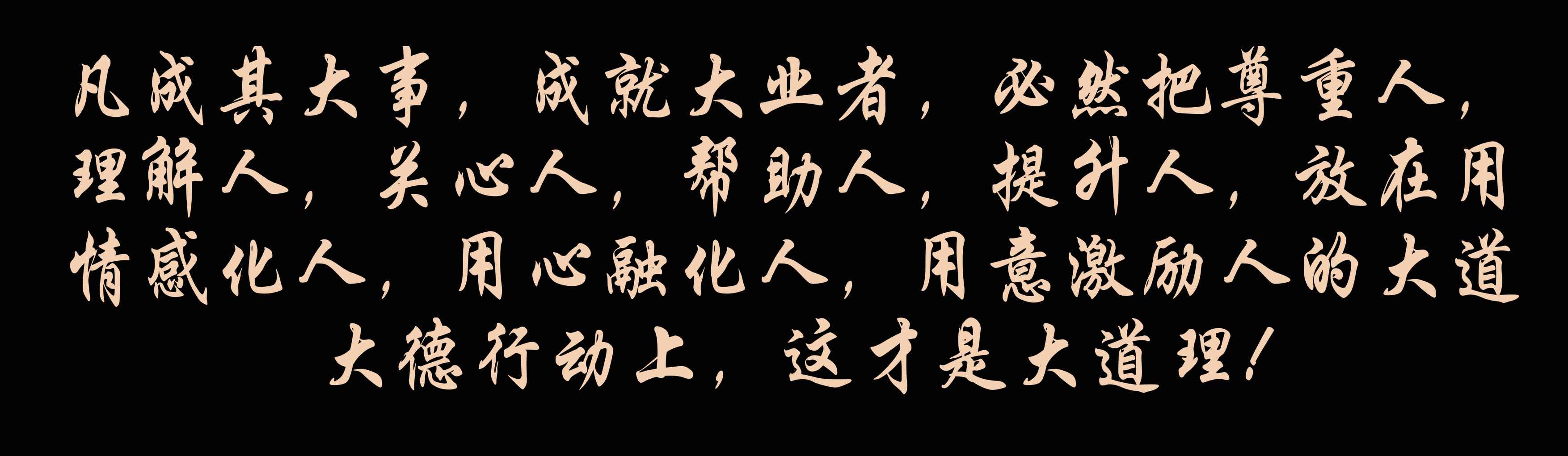 思維模式?jīng)Q定成敗,境界決定格局空間!凡成其大事,成就大業(yè)者,必然把尊重人,理解人,關(guān)心人,幫助人,提升人,放在用情感化人,用心融化人,用意激勵(lì)人的大道大德行動(dòng)上,這才是大道理!