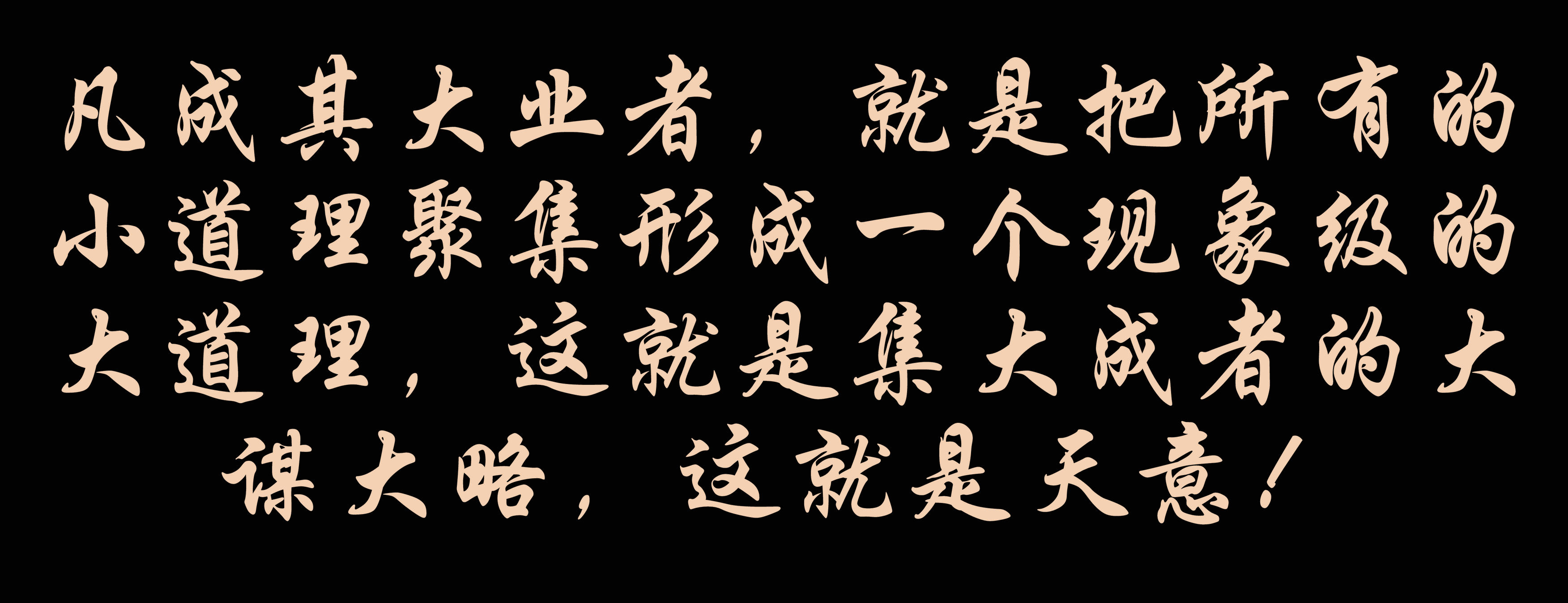 凡成其大業(yè)者,就是把所有的小道理聚集形成一個(gè)現(xiàn)象級的大道理,這就是集大成者的大謀大略,這就是天意!