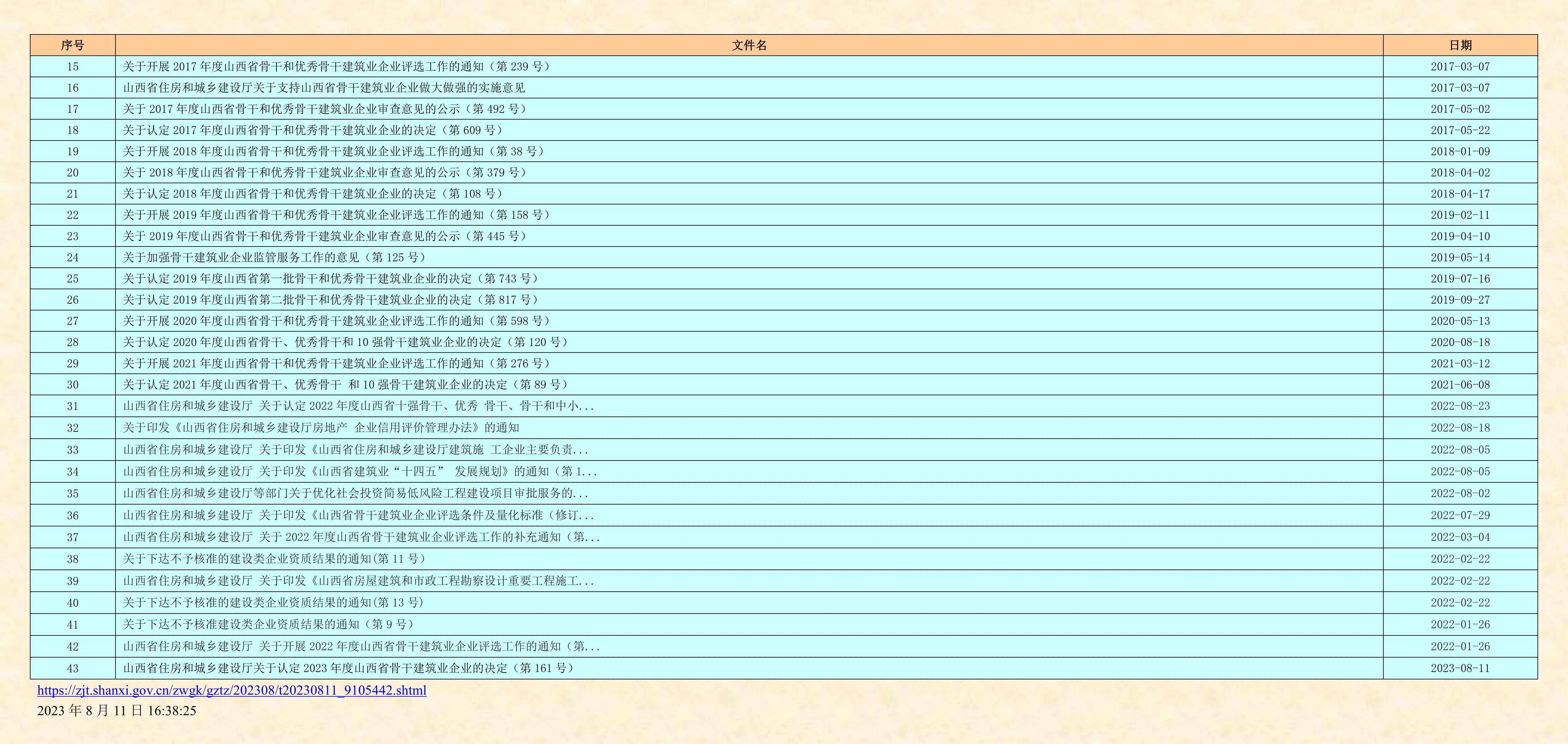 今天,省住建廳公布了2023年度山西省骨干建筑業(yè)企業(yè)名單。這是從2013年開始連續(xù)十一年第12次對全省建筑業(yè)企業(yè)的又一次檢驗和認定!