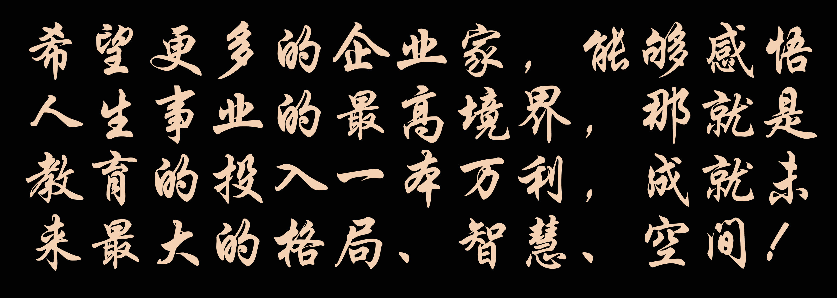 希望更多的企業(yè)家,能夠感悟人生事業(yè)的最高境界,那就是教育的投入一本萬(wàn)利,成就未來(lái)最大的格局、智慧、空間!