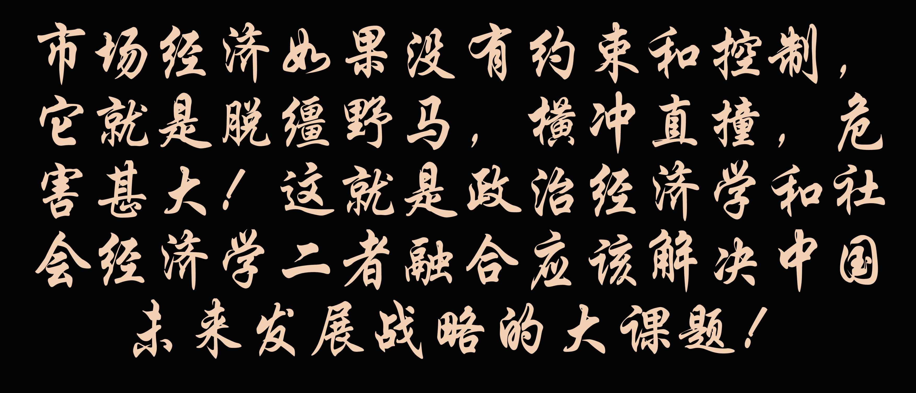 市場(chǎng)經(jīng)濟(jì)如果沒(méi)有約束和控制,它就是脫韁野馬,橫沖直撞,危害甚大!這就是政治經(jīng)濟(jì)學(xué)和社會(huì)經(jīng)濟(jì)學(xué)二者融合應(yīng)該解決中國(guó)發(fā)展戰(zhàn)略的大課題!