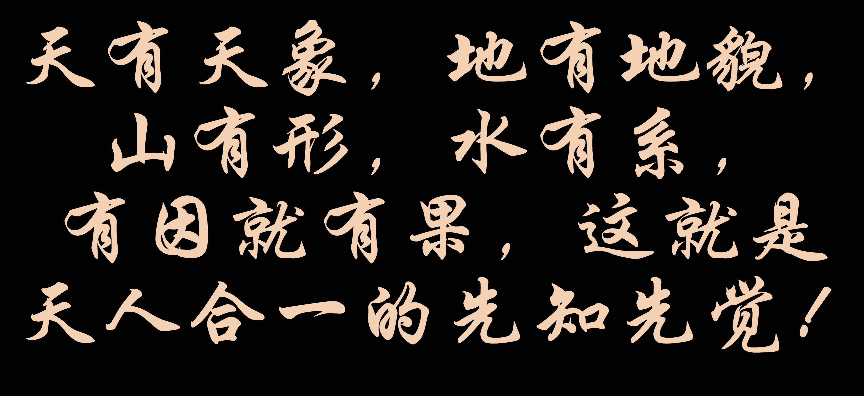 天有天象,地有地貌,山有形,水有系,有因就有果,這就是天人合一的先知先覺!