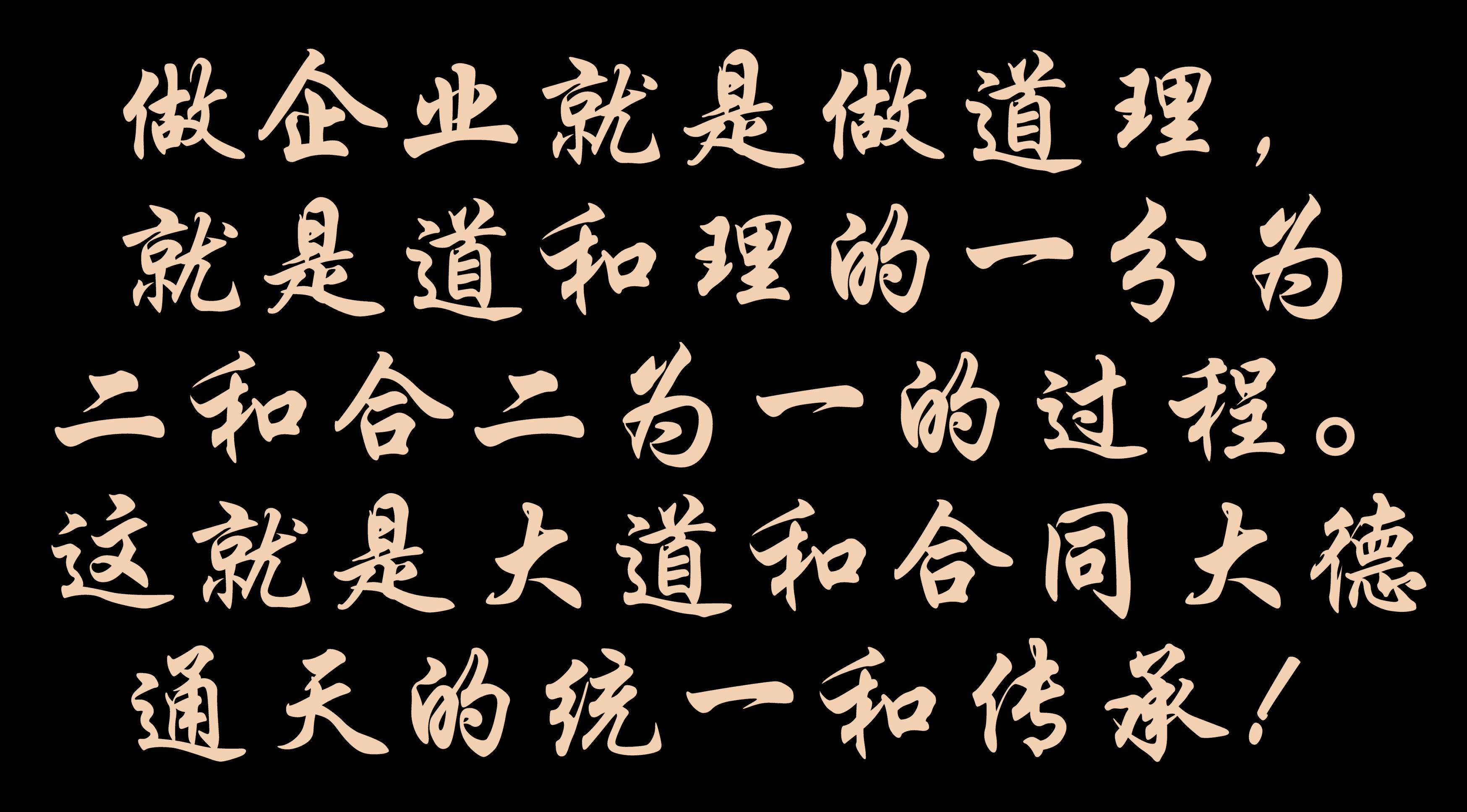 大自然一切事物,都是一個(gè)非常簡單的和與不和,合與不合的利益關(guān)系,做企業(yè)就是做道理,就是道和理的一分為二和合二為一的過程。這就是大道和合同大德通天的統(tǒng)一和傳承!