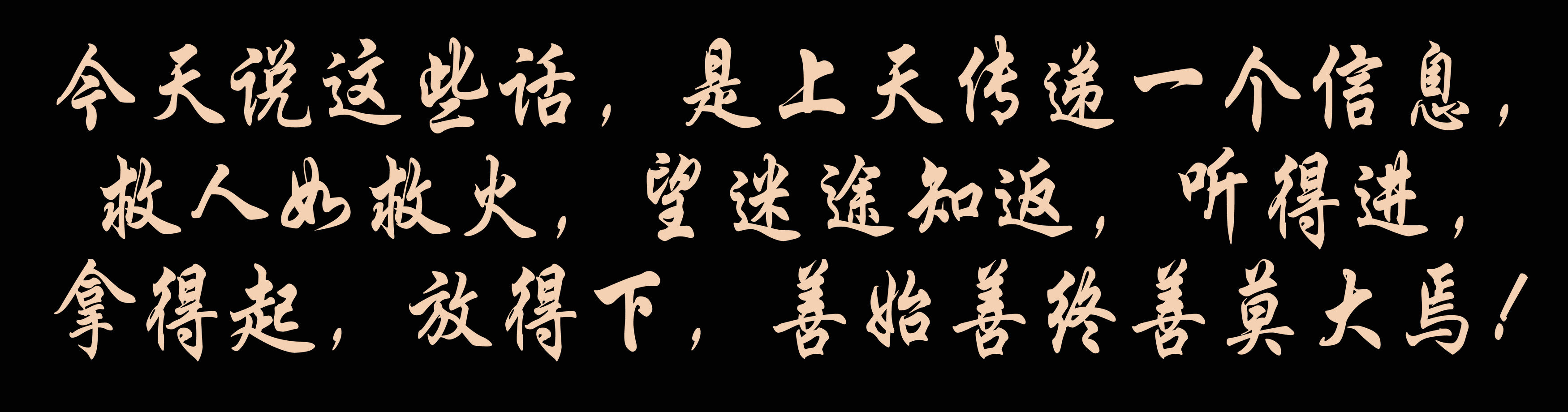 今天說這些話,是上天傳遞一個信息,救人如救火,望迷途知返,聽得進,拿得起,放得下,善始善終善莫大焉!