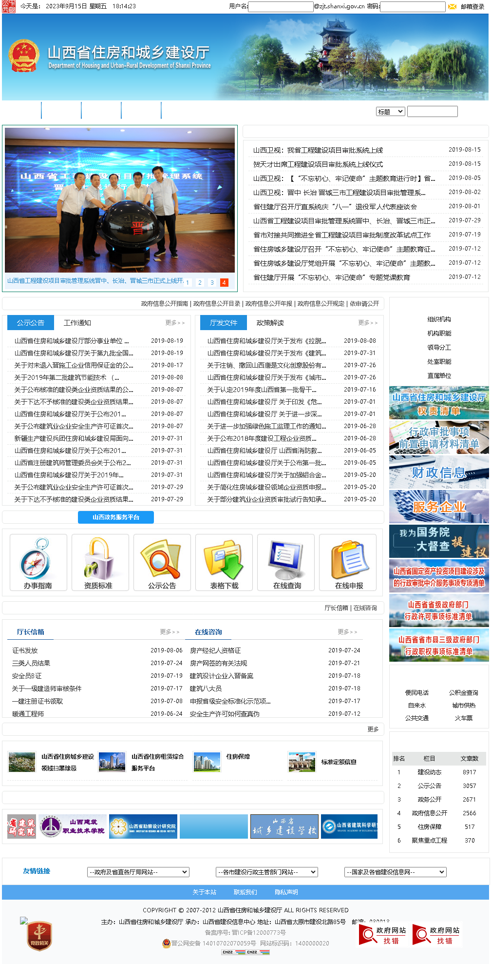 山西省住房和城鄉(xiāng)建設(shè)廳網(wǎng)站升級改版試運行公告