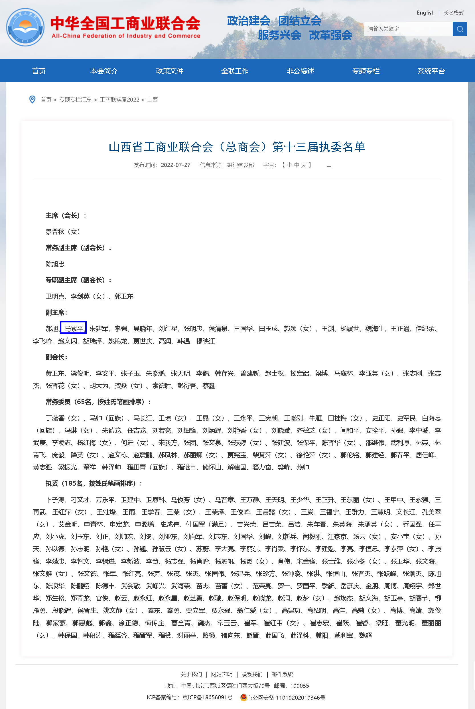 2017年——第十二屆山西省工商業(yè)聯(lián)合會副主席、山西省民營企業(yè)資產(chǎn)置換協(xié)會會長、山西恒圓星實(shí)業(yè)集團(tuán)有限公司董事長、山西億物商務(wù)信息咨詢有限公司董事長