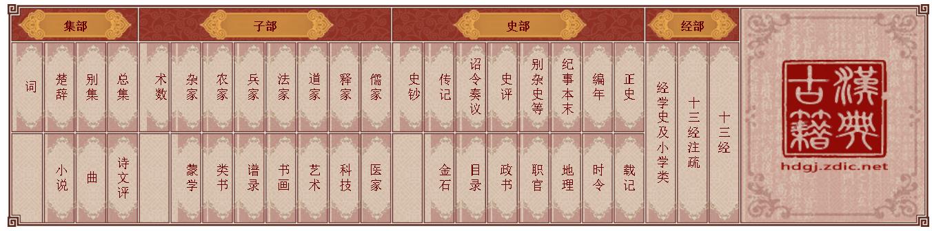 史部 子部 集部 詩(shī)部 儒部 易部 藝部 醫(yī)部 叢部 佛部 道部
