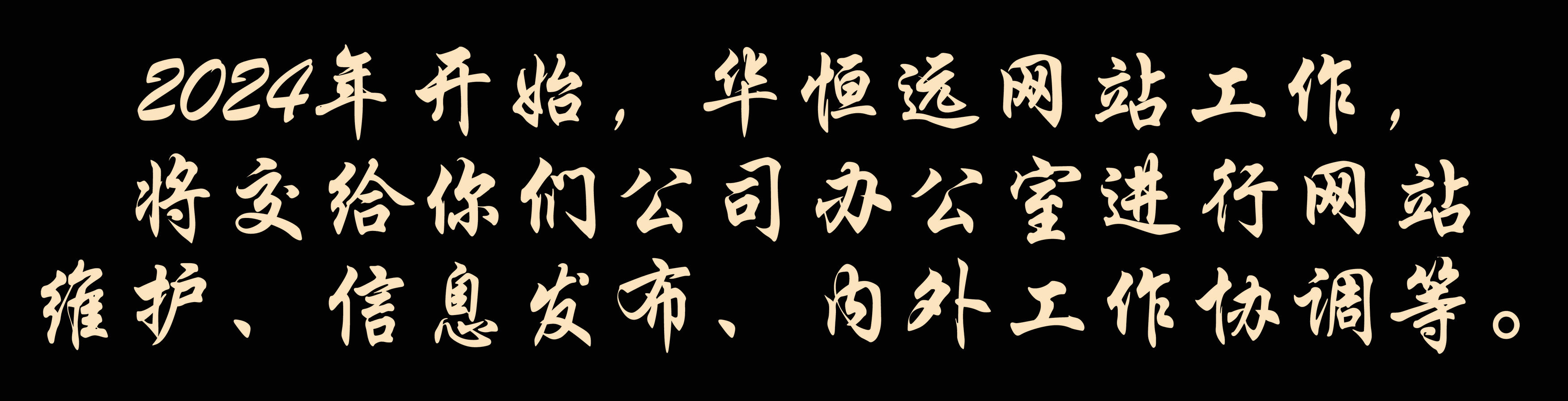 提前打個招呼,2024年開始,華恒遠網(wǎng)站工作,將交給你們公司辦公室進行網(wǎng)站維護、信息發(fā)布、內(nèi)外工作協(xié)調(diào)等。