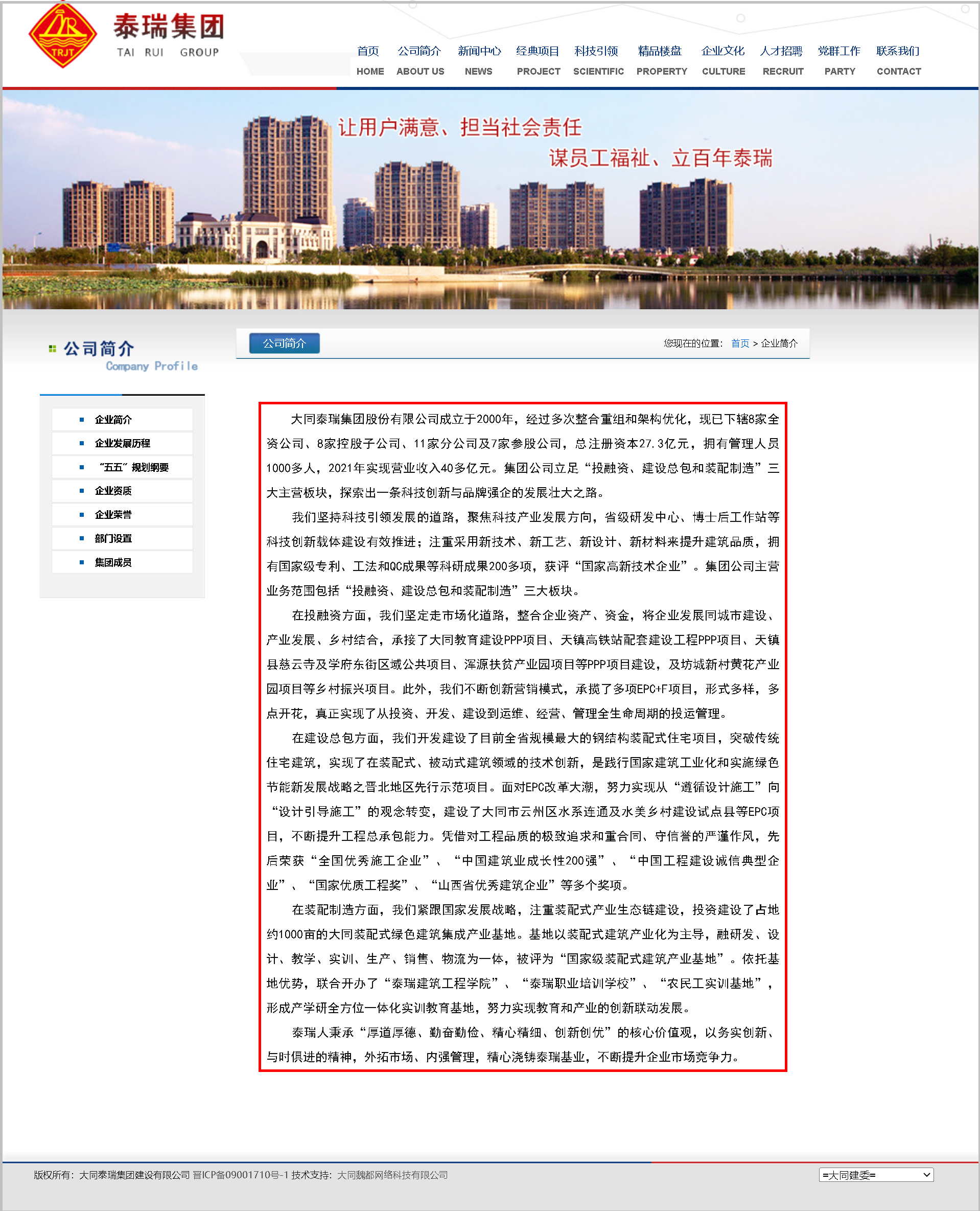 大同泰瑞集團建設(shè)有限公司,經(jīng)過二十三年的拼搏奮斗,終于如愿以償進入了全國建筑行業(yè)高端行列,成為特級資質(zhì)的大企業(yè)、大集團、大公司!