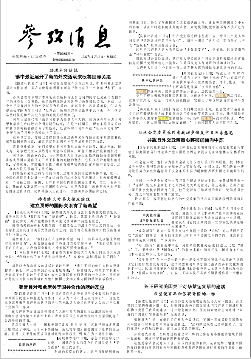 同時(shí),外務(wù)省人士對毛主席的建議(指簽訂中日互不侵犯條約——編者注)不予考慮。
