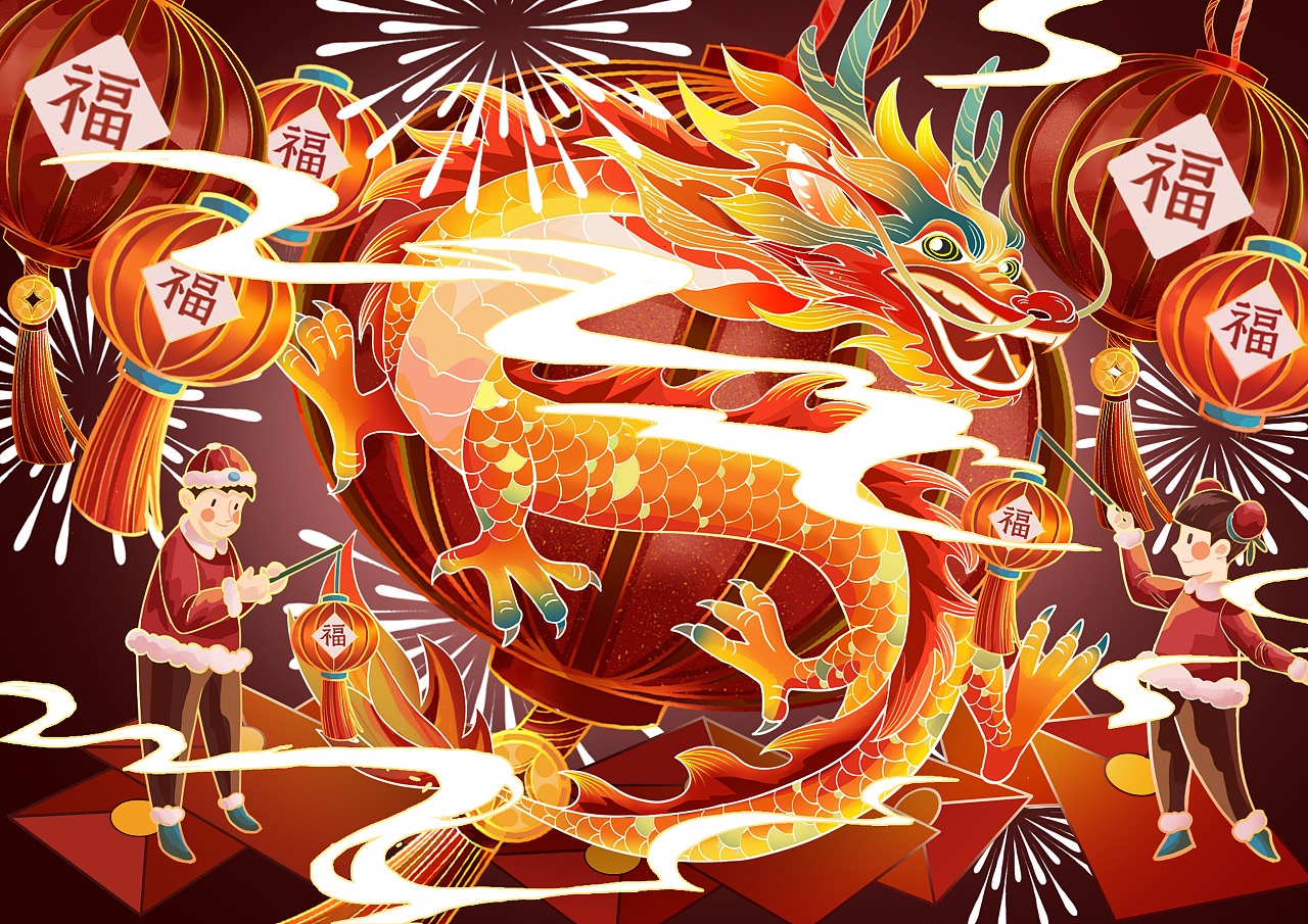 感悟上天恩 五龍降祥瑞 瑞雪兆豐年 甲辰好運來