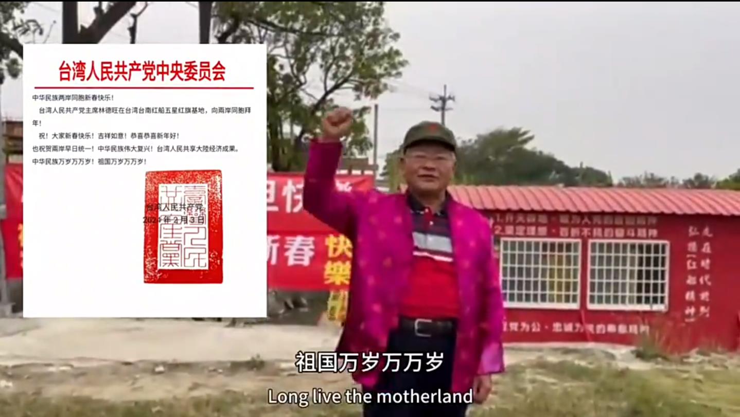 臺灣人民共產(chǎn)黨主席林德旺在臺灣臺南紅船五星紅旗基地,向兩岸同胞拜年!