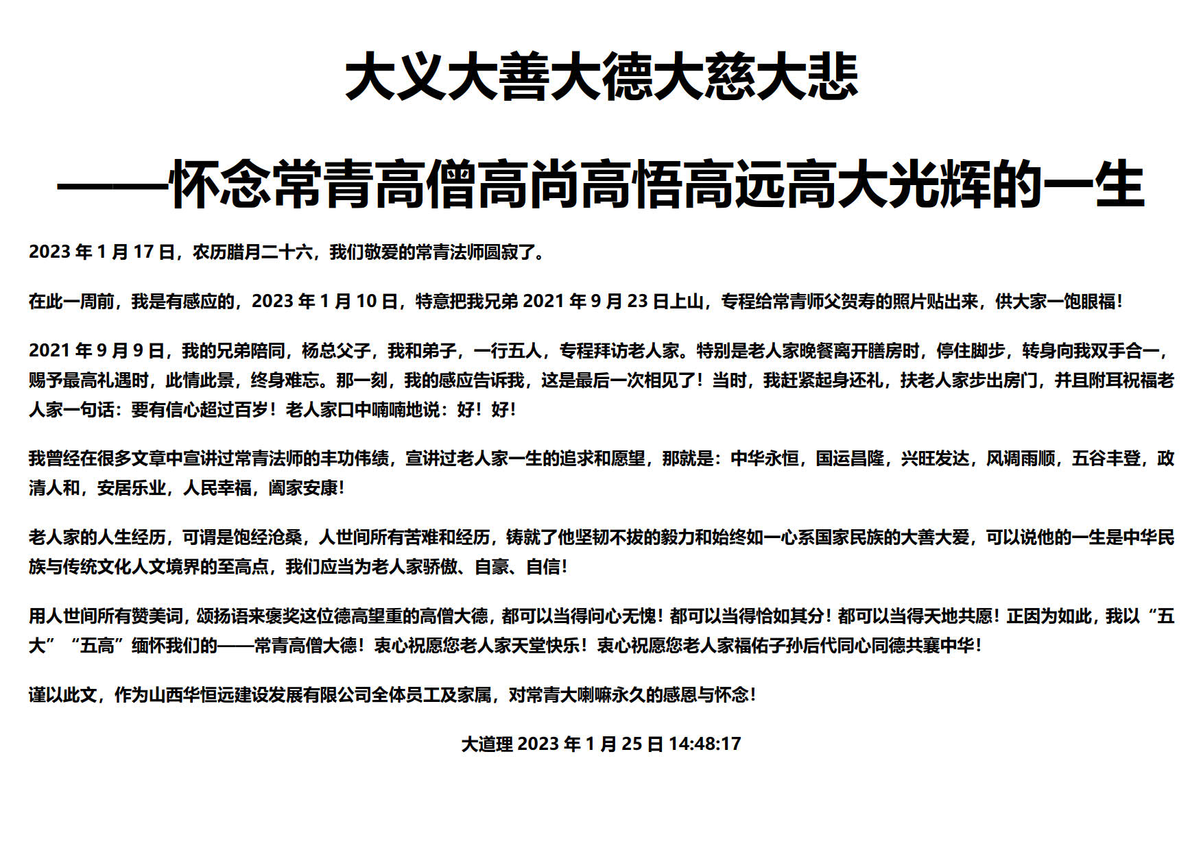 五臺山佛教協(xié)會發(fā)布訃告: