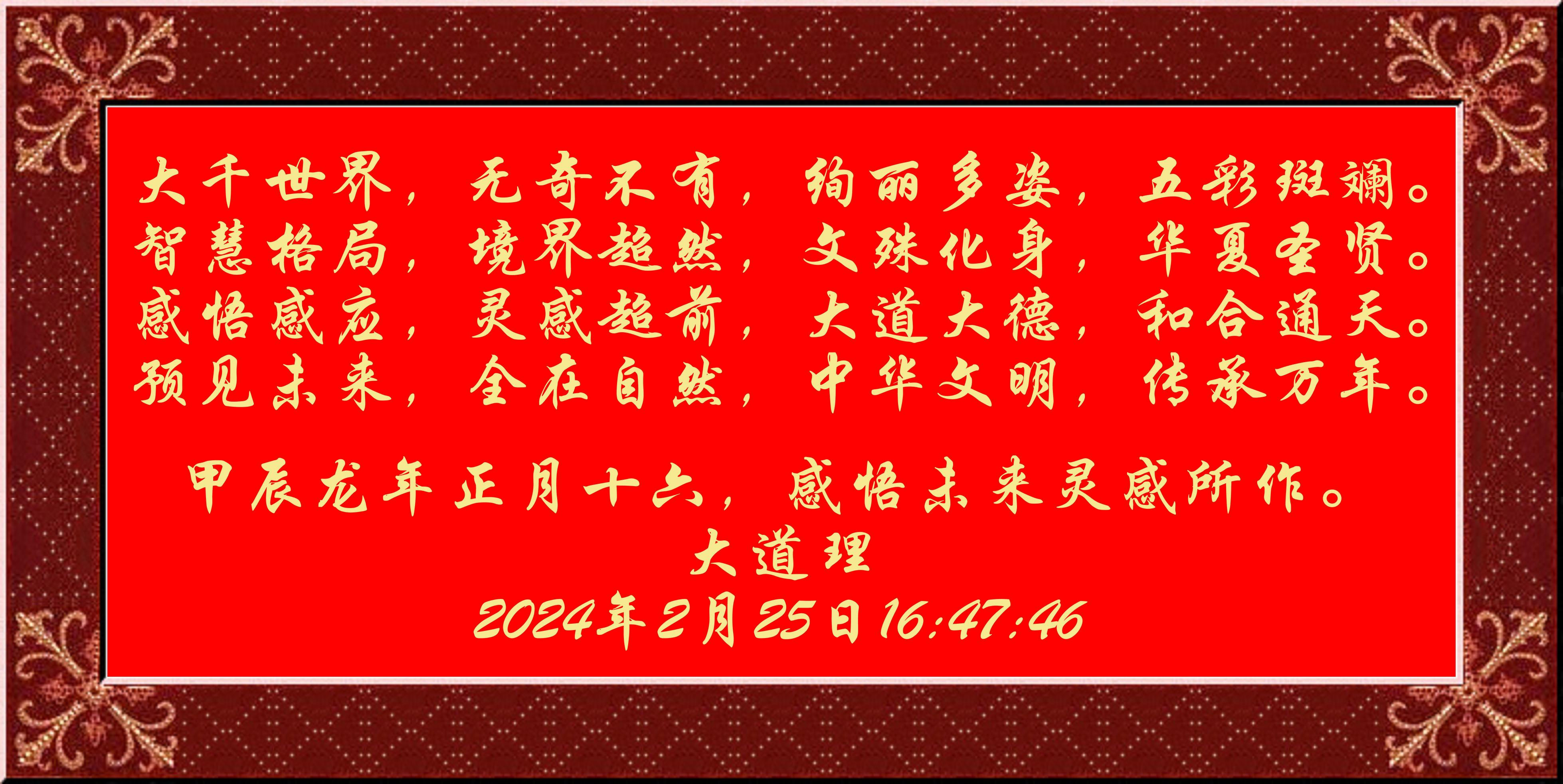 感悟感應,靈感超前,大道大德,和合通天。預見未來,全在自然,中華文明,傳承萬年。