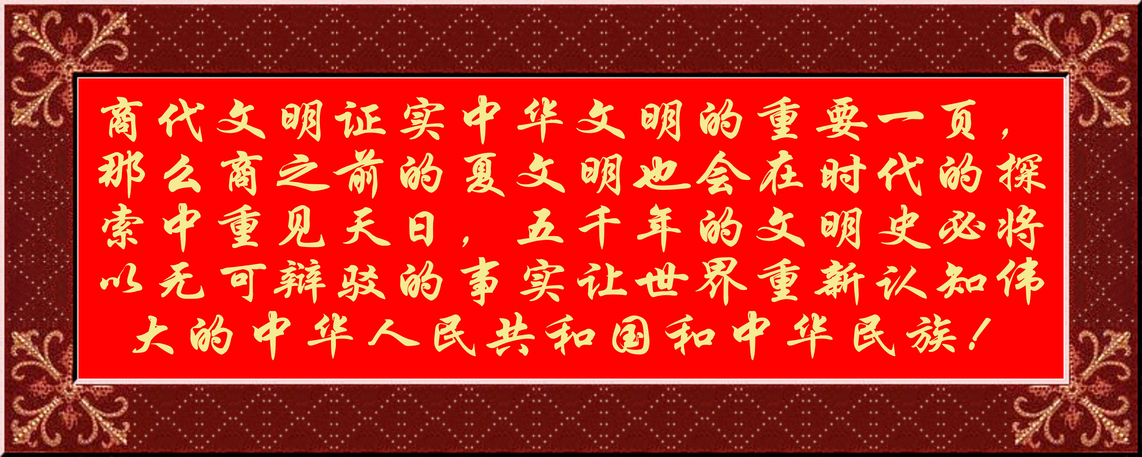 商代文明證實中華文明的重要一頁,那么商之前的夏文明,也會在時代的探索中重見天日!五千年的文明史,必將以無可辯駁的事實,讓世界重新認知偉大的中華民族和偉大的中華人民共和國!