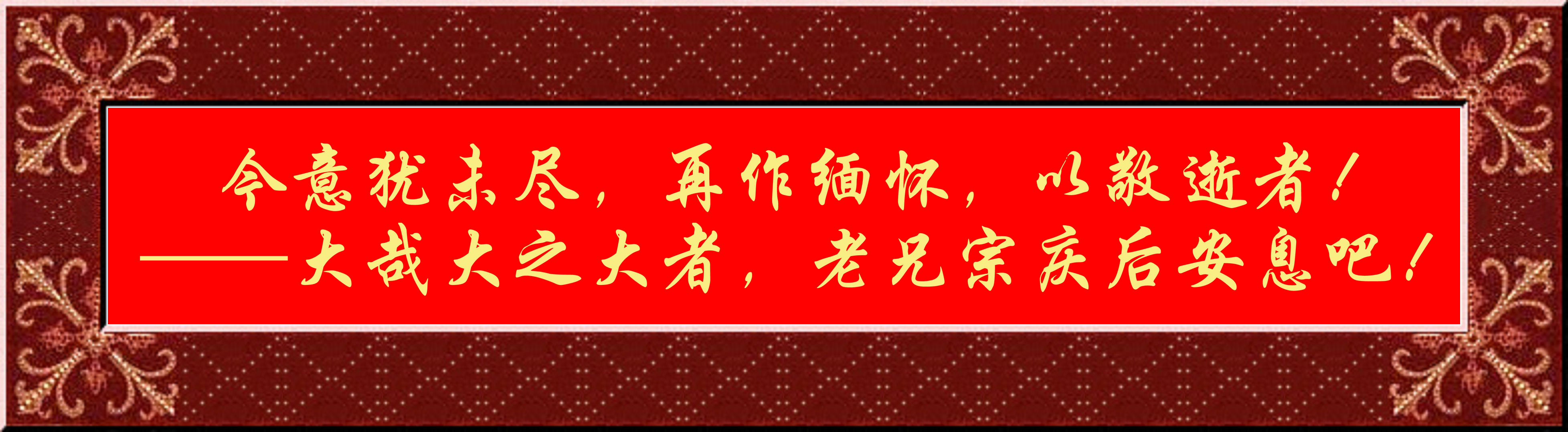 昨發(fā)《感悟一代民營企業(yè)和民營企業(yè)家的宗師——深切緬懷宗慶后同志光輝的一生》于娃哈哈集團(tuán)郵箱,今意猶未盡,再作緬懷,以敬逝者!——大哉大之大者也,老兄宗慶后安息吧!